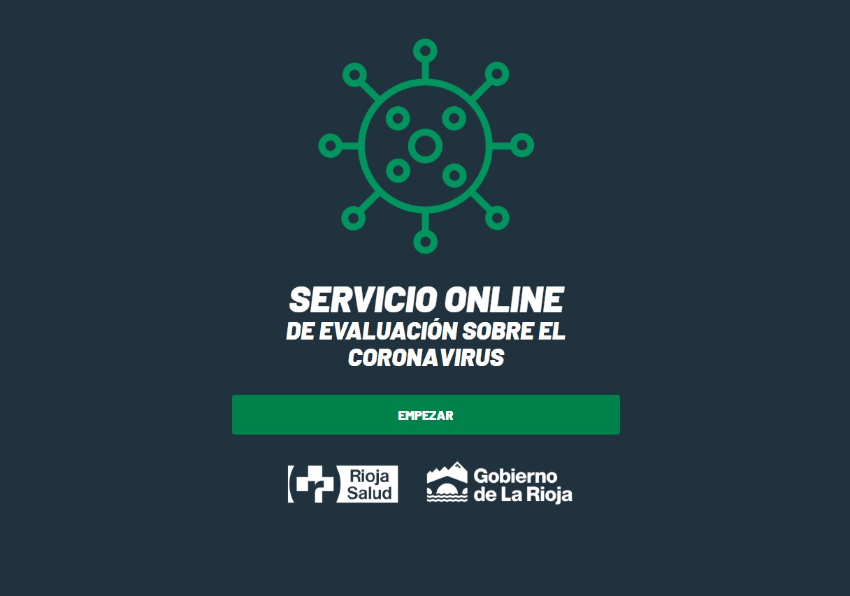 El Gobierno de La Rioja ha puesto a disposición de los ciudadanos una plataforma online coronavirus.riojasalud.es que ofrece la posibilidad de realizar una evaluación personal de la sintomatología asociada a la COVID-19. Esta herramienta permite, además, recibir información y recomendaciones relacionadas con la patología de forma inmediata.