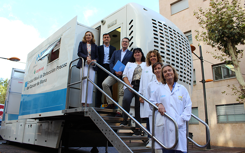 En la visita de la unidad móvil de detección precoz del Cáncer de mama, Martín estuvo acompañada por Jesús Álvarez, gerente del Servicio Riojano de Salud; Juan Carlos Oliva, director gerente de la Fundación Rioja Salud; Mercedes Sainz, jefa de sección de la Unidad de Mama y profesionales de la unidad asistencial.