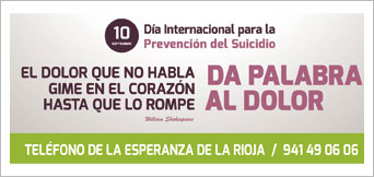 Además, el próximo miércoles 12 de septiembre el periodista, sociólogo y autor del libro ‘La mirada del suicida. El enigma y el estigma’ Juan Carlos Pérez impartirá la charla ‘Suicidio: el estigma y el enigma’ a las 19.30 horas en el Centro Caja Rioja-Bankia Gran Vía. Simultáneamente, desde el 1 hasta el 17 de septiembre, las personas que lo deseen pueden participar en la iniciativa ‘Pedalea por la vida’, apadrinada por la ciclista riojana Sheyla Gutiérrez, en la que las personas que lo deseen pueden sumar los kilómetros que rueden en bici a los de millones de personas en el mundo a través de la página web del Teléfono de la Esperanza de La Rioja www.telefonodelaesperanzalarioja.org La cifra total de kilómetros sumados se dará a conocer el lunes 17 de septiembre durante el pisado popular de la uva a las 20.00 horas en el Ayuntamiento de Logroño.