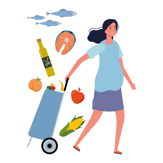- Pescado de mar, preferentemente azul y previamente congelado, aporta ácidos grasos omega-3 y otros nutrientes esenciales necesarios para el buen desarrollo del feto.