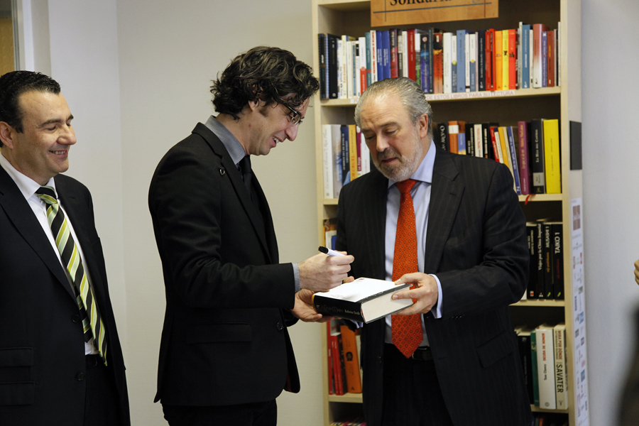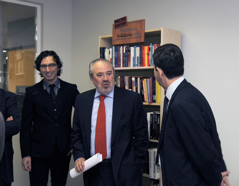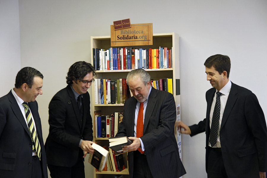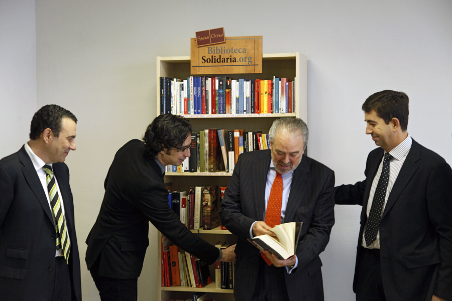 El consejero de Salud y de Servicios Sociales, José Ignacio Nieto, acompañado por el Gerente de la Fundación Hospital Calahorra, Javier Aparicio, y por el director del Centro, Carlos Piserra, ha recibido de “Santos Ochoa”, concretamente de su director general, Fernando Ochoa, y del novelista Andrés Pascual la segunda Biblioteca Solidaria, con 200 libros, destinada a la Fundación Hospital Calahorra.