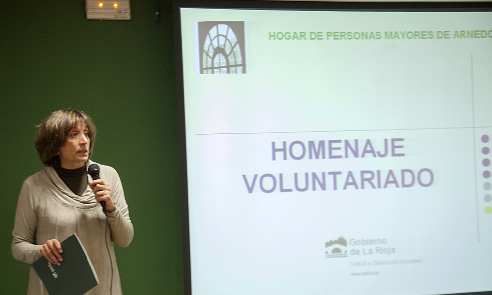 El consejero de Salud y Servicios Sociales, José Ignacio Nieto, y la directora general de Servicios Sociales, Carmen Corral, han entregado en Arnedo a las personas que colaboran con el centro como voluntarios los diplomas que acreditan su labor.