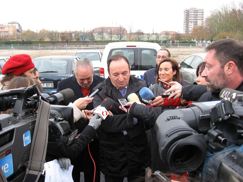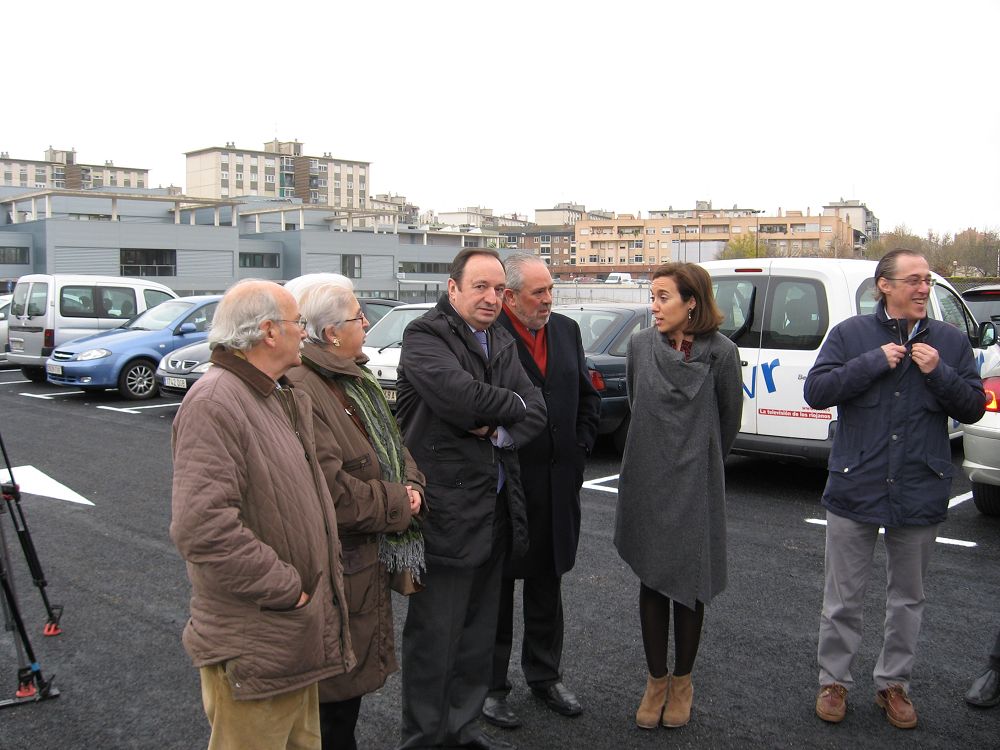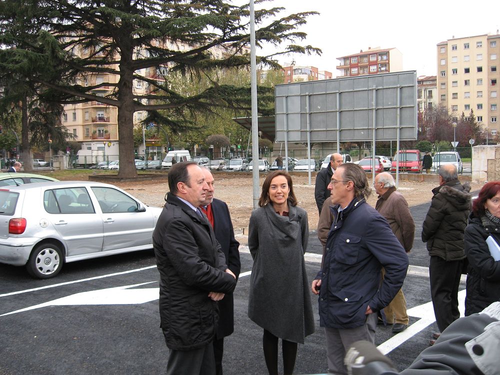 El presidente del Gobierno de La Rioja, Pedro Sanz, la alcaldesa de Logroño, Cuca Gamarra, y el consejero de Salud y Servicios Sociales, José Ignacio Nieto, han visitado hoy el solar en el que hasta 2009 se alzaba el Hospital San Millán y hoy se ha habilitado como aparcamiento gratuito para 176 vehículos.