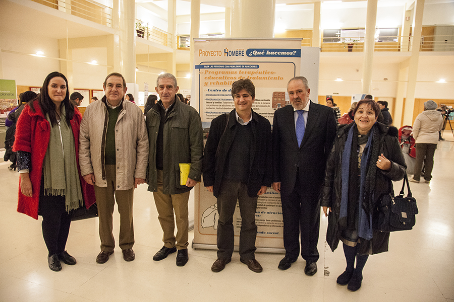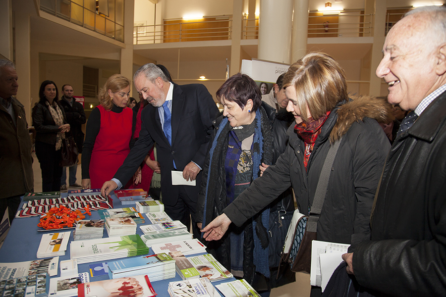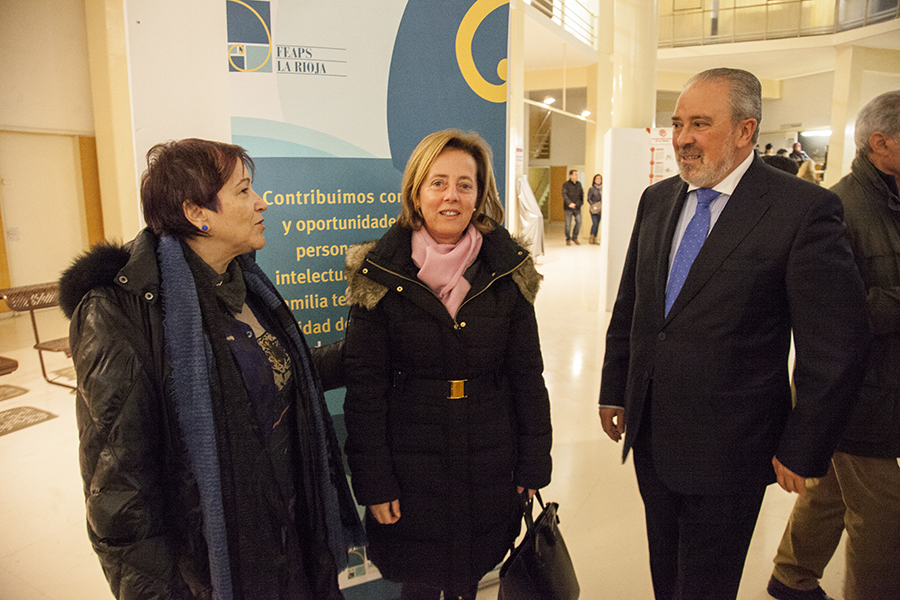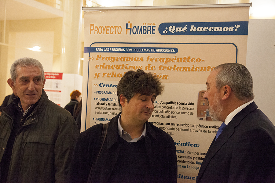 El consejero de Salud y Servicios Sociales, José Ignacio Nieto, acompañado por la concejala de Familia y Política Social, Paloma Corres, y el presidente de la Federación Riojana de Voluntariado, Emilio Carreras, ha inaugurado hoy la exposición ‘Generadores de Buenas Noticias’,