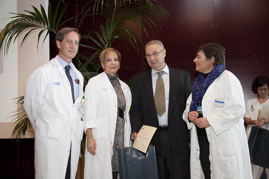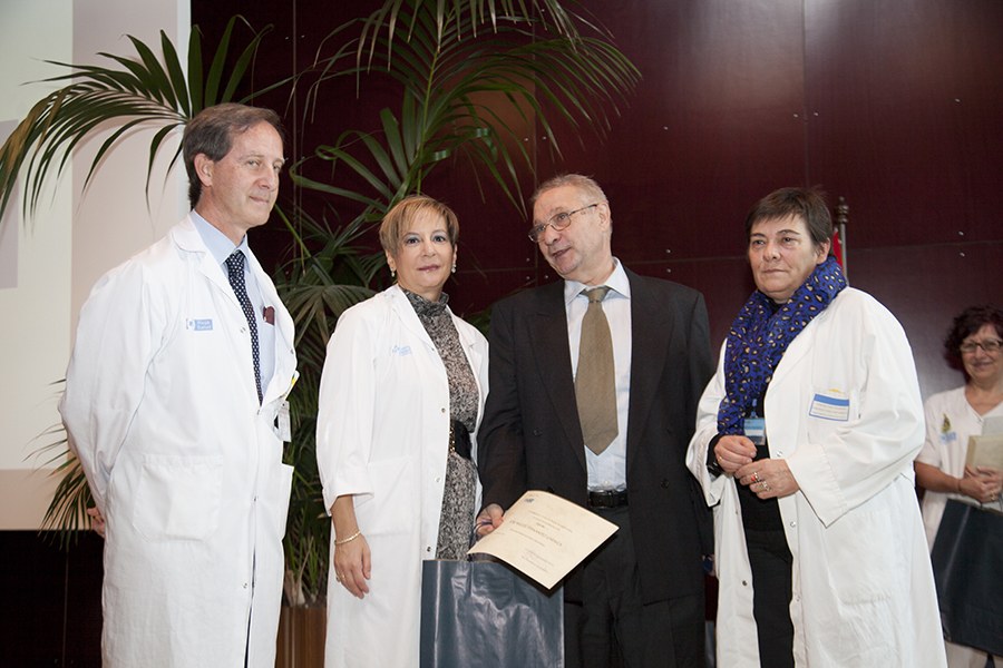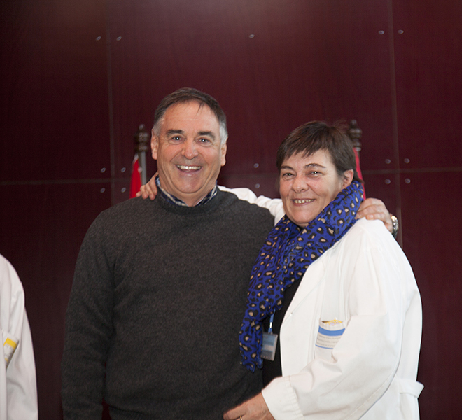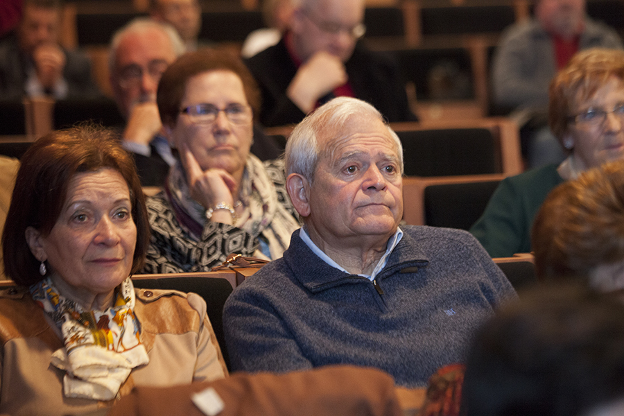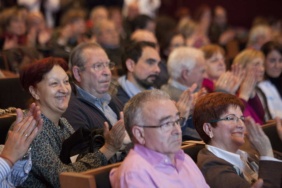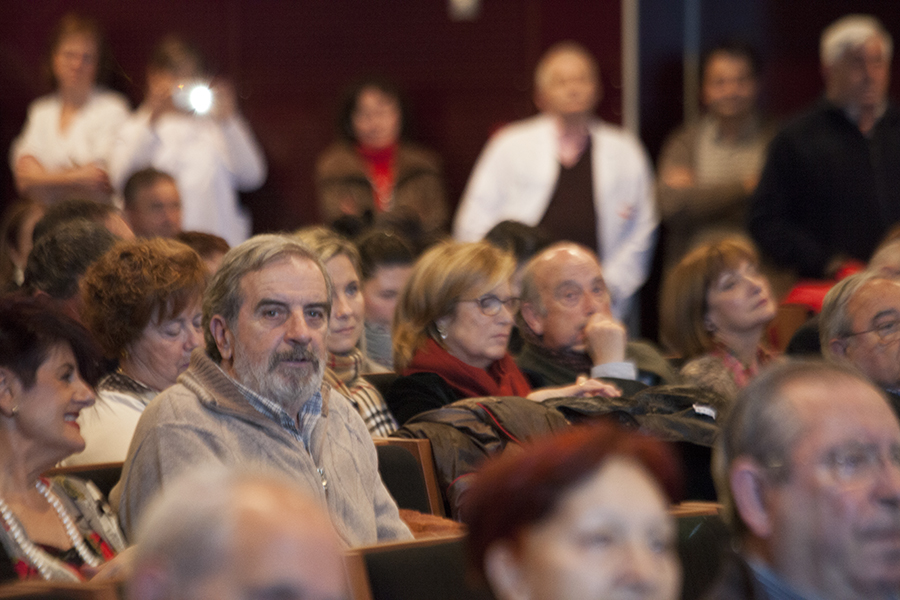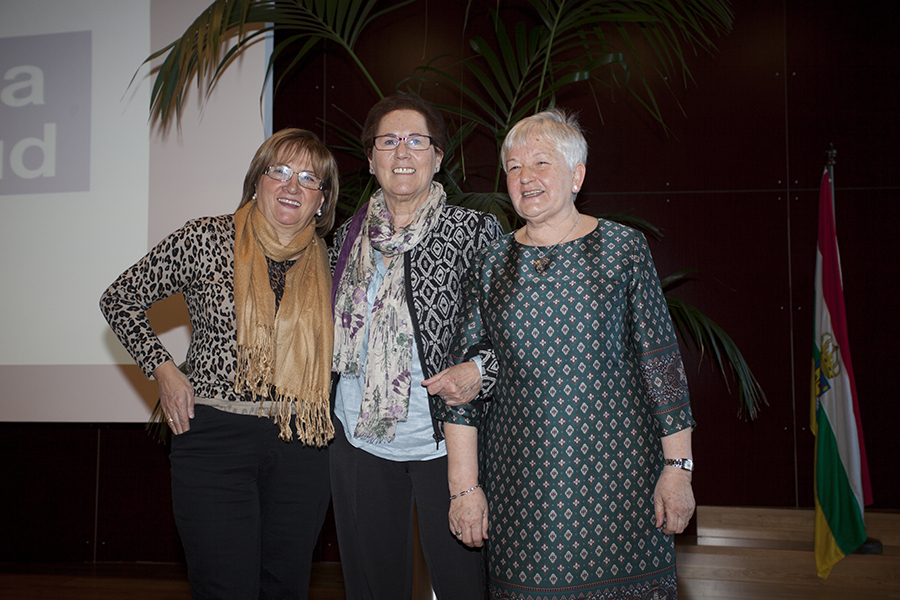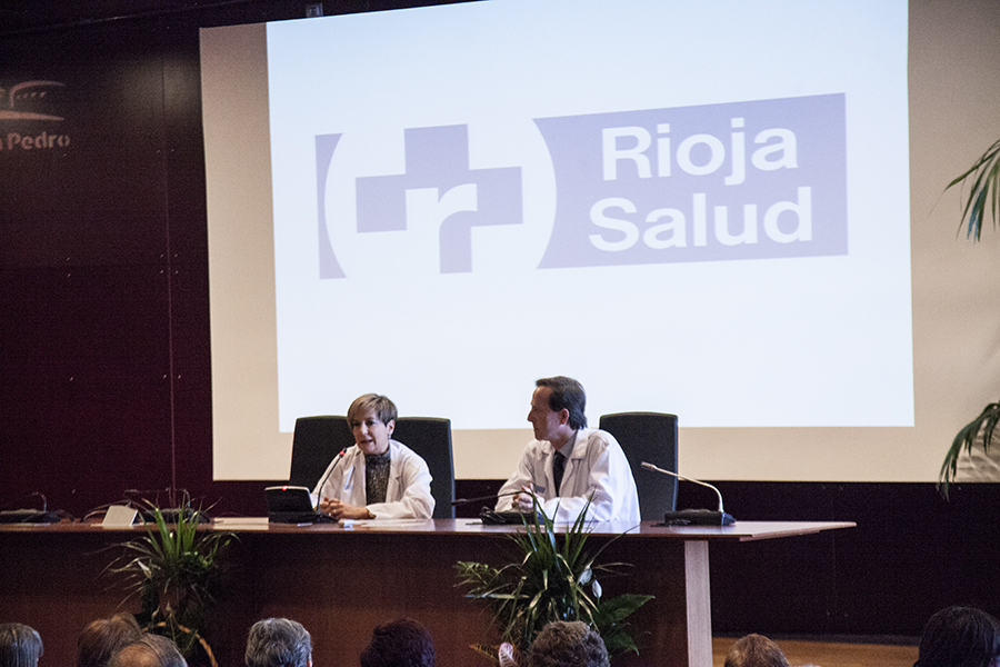 La gerente del Servicio Riojano de Salud, Mª Luz de los Mártires, junto con el director médico, Carlos Piserra, ha intervenido en el homenaje que el Seris ha rendido esta mañana a los profesionales que se han jubilado este año, en el salón de actos del Hospital San Pedro.