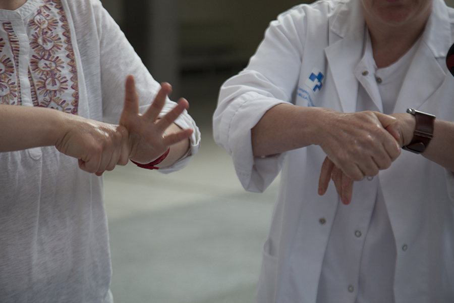 En los monitores de las salas de espera de los hospitales se emite toda la semana un vídeo promocional sobre Higiene de Manos “O les mains”, patrocinado por la OMS.