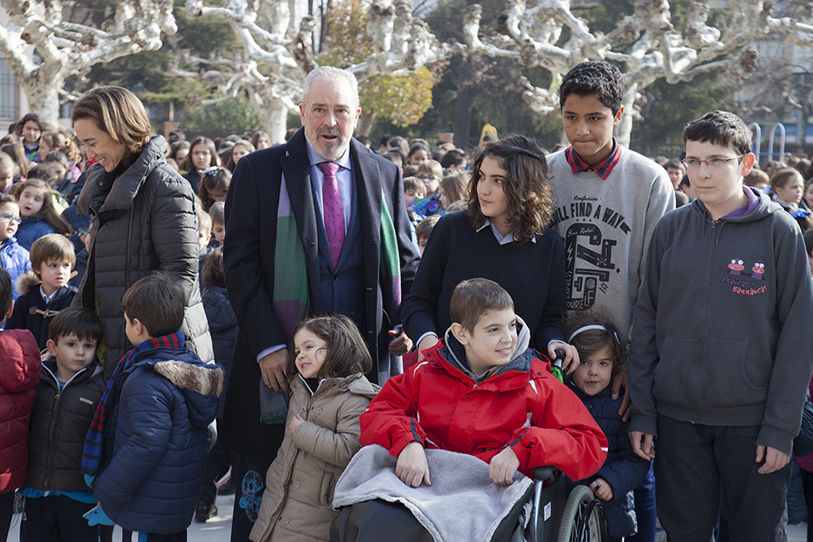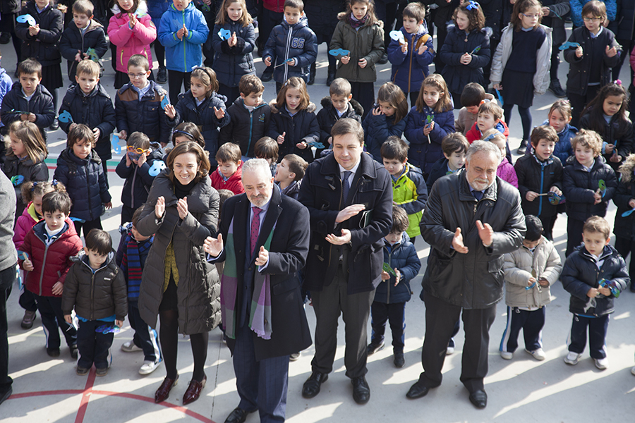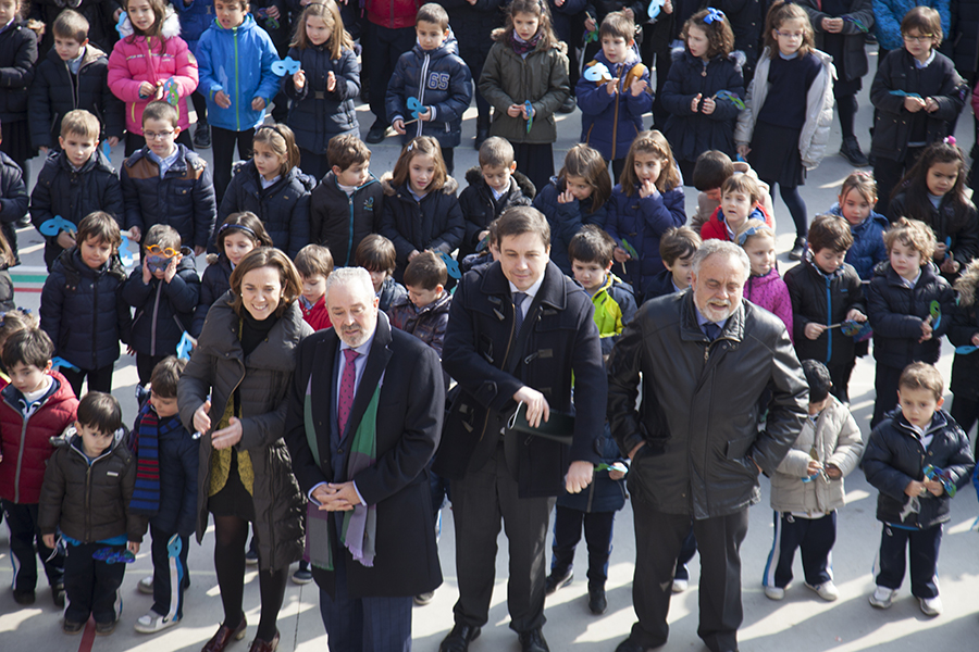 El consejero de Salud y Servicios Sociales, José Ignacio Nieto, ha participado esta mañana en el colegio Inmaculado Corazón de María de Logroño (Escolapias), en el acto organizado para conmemorar el Día Internacional del Niño con Cáncer, organizado por la asociación FARO. Al acto han asistido, además, la alcaldesa de Logroño, Cuca Gamarra, y el director general de Educación, Alberto Galiana.