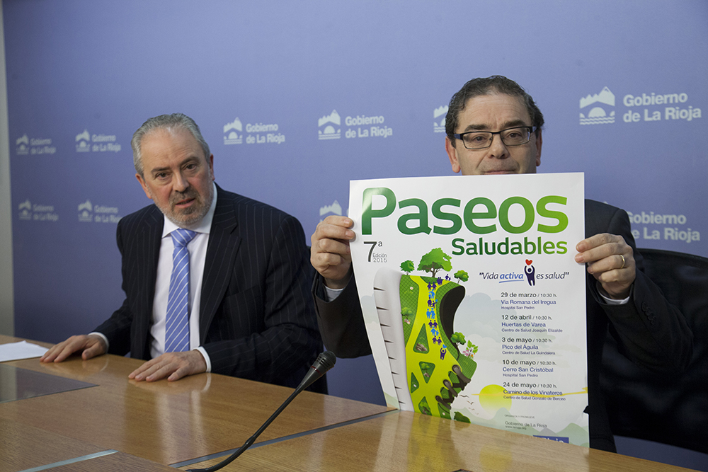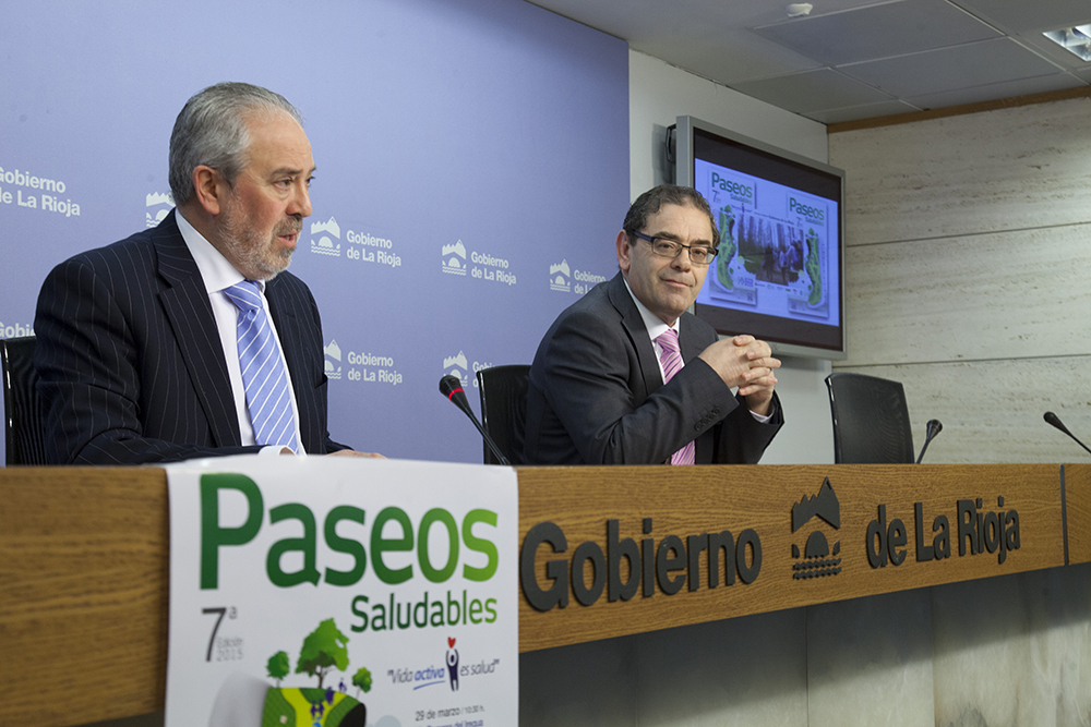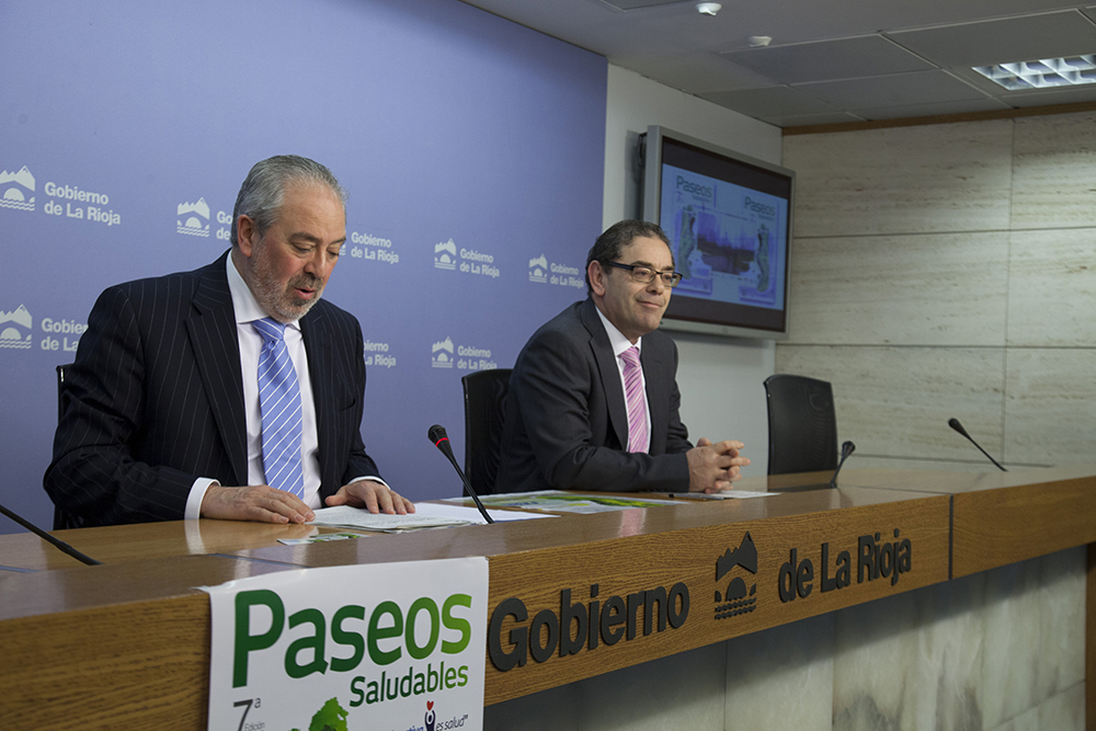 El consejero de Salud y Servicios Sociales, José Ignacio Nieto, y el director general de Salud Pública y Consumo, José Miguel Acítores, han presentado la VII edición de Paseos Saludables, organizados por la Consejería con el objetivo de promocionar la actividad física en la población riojana.