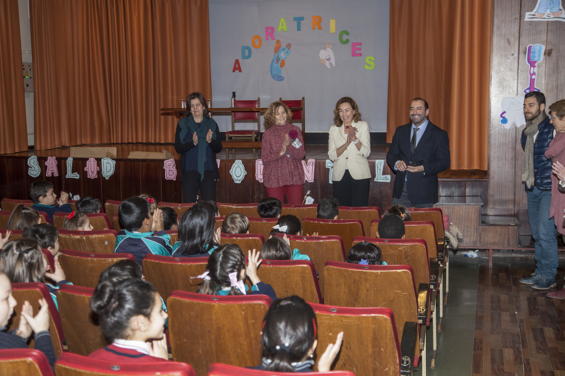 La Consejería de Salud ha iniciado el programa de Salud Bucodental con el reparto de neceseres a los escolares de Educación Primaria. Para dar visibilidad a actuación preventiva, la consejera de Salud, María Martín, acompañada por la directora general de Salud Pública y Consumo, Rosa López Garnica, y el subdirector general de Ordenación Educativa, Innovación y Atención a la Diversidad, Antonio Mendaza, ha participado en la entrega de neceseres a los alumnos de 1º de Educación Primaria en el colegio Adoratrices de Logroño. Para Martín, se trata de una importante actuación de promoción de la salud en el ámbito escolar y familiar.