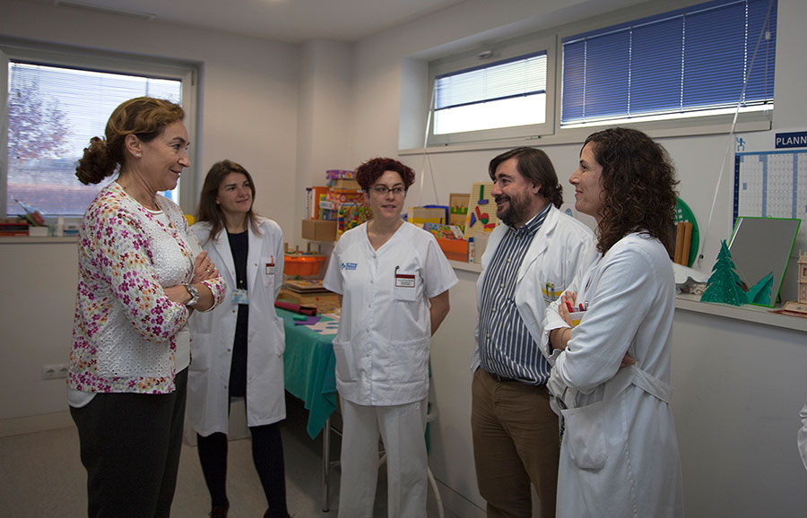 La consejera de Salud, María Martín; el director del Área de Salud, José Miguel Acítores, y la directora de Enfermería, Yolanda Caro, acompañados por los profesionales sanitarios que atienden a estos pacientes han visitado los espacios en donde los nuevos especialistas incorporados para atender a los pacientes de esta Unidad (médico especialista en Rehabilitación, terapeuta ocupacional y logopeda), desarrollarán su trabajo, junto con los fisioterapeutas. María Martín ha destacado que la nueva Unidad proporcionará un tratamiento integral a estos pacientes “con el objetivo de que puedan alcanzar la mayor recuperación y autonomía posible tras el accidente cerebrovascular”. Algunos pacientes, tras padecer un episodio de este tipo, sufren un deterioro que les impide llevar a cabo las actividades de su día a día con normalidad, “y con una asistencia y tratamiento proporcionado desde todos los ámbitos asistenciales podemos garantizar una máxima recuperación”.