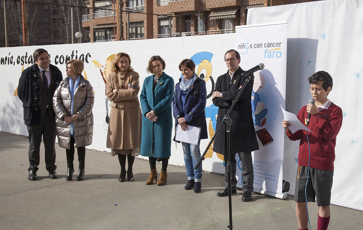 El acto, organizado por la Asociación Riojana de Familiares y Amigos de Niños con Cáncer, ha contado con la asistencia de la presidenta de FARO, Rosana Gómez-Cadiñanos, representantes del Claustro del Colegio Sagrado Corazón Jesuitas y alumnos y profesores que leerán un manifiesto.