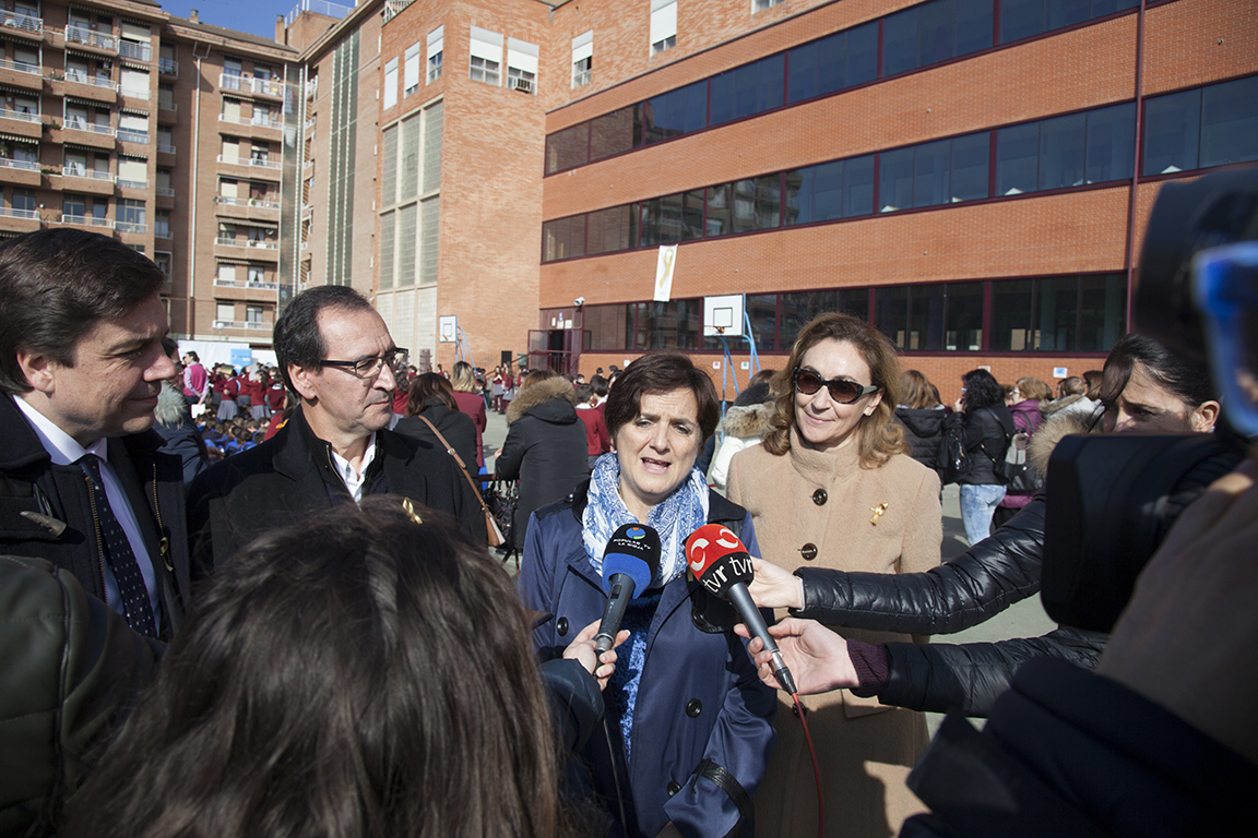 La consejera de Salud, María Martín, y el consejero de Educación, Formación y Empleo, Alberto Galiana, han participado esta mañana, en el Colegio Sagrado Corazón, Jesuitas, de Logroño, en el acto conmemorativo del Día Internacional del Niño con Cáncer en el que van a participar más de 75.000 niños de 300 centros escolares de toda España con el lema No dejes de seguirme.