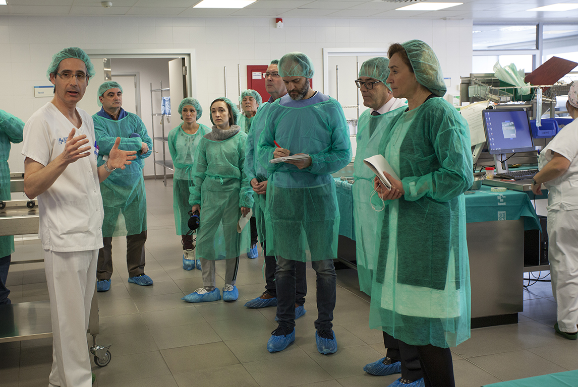 A lo largo de la visita, Martín han comprobado el funcionamiento en cadena de la central, dividido en diferentes áreas definidas de trabajo: recepción de material sucio y lavado; zona de empaquetado, procesado de textil y carga de autoclaves; almacén de material estéril; y sala de tratamiento/fabricación de agua descalcificada y osmotizada.