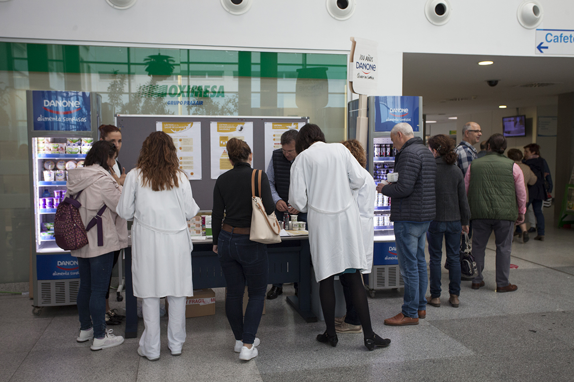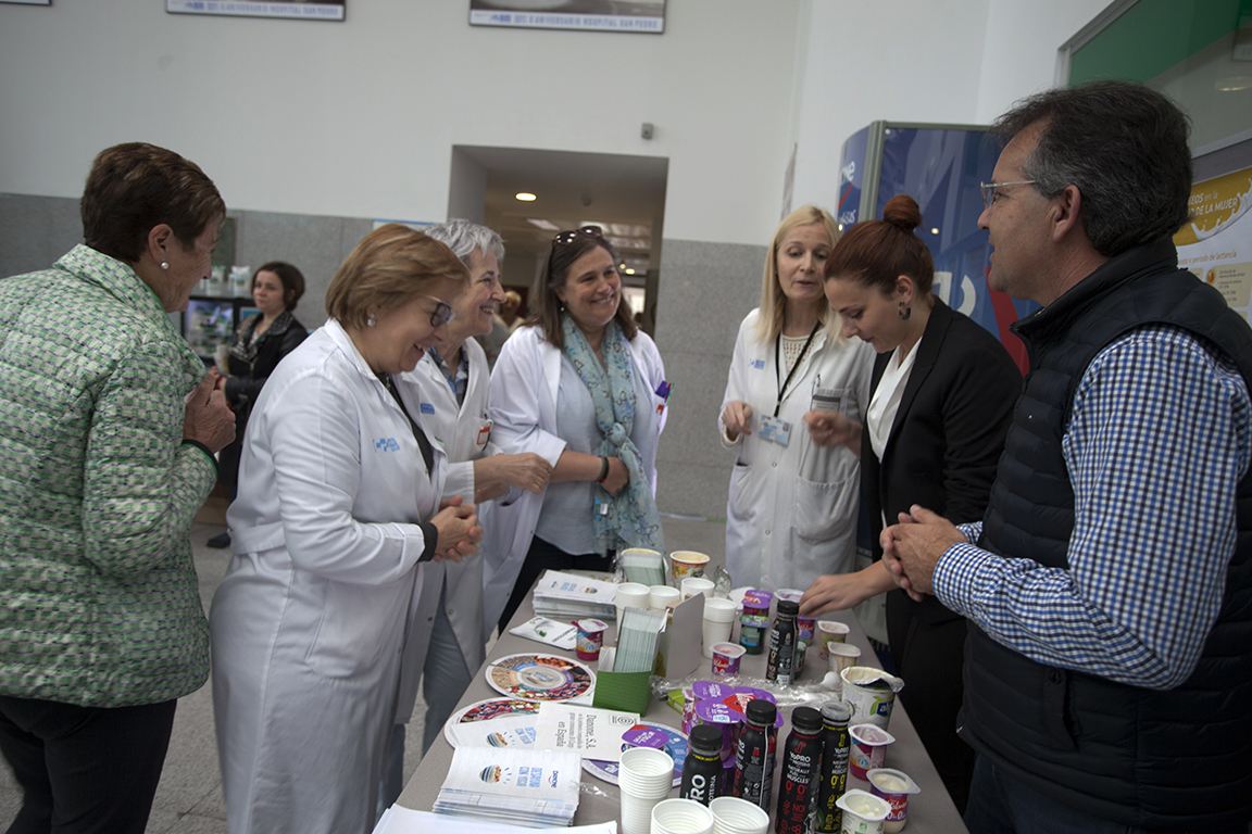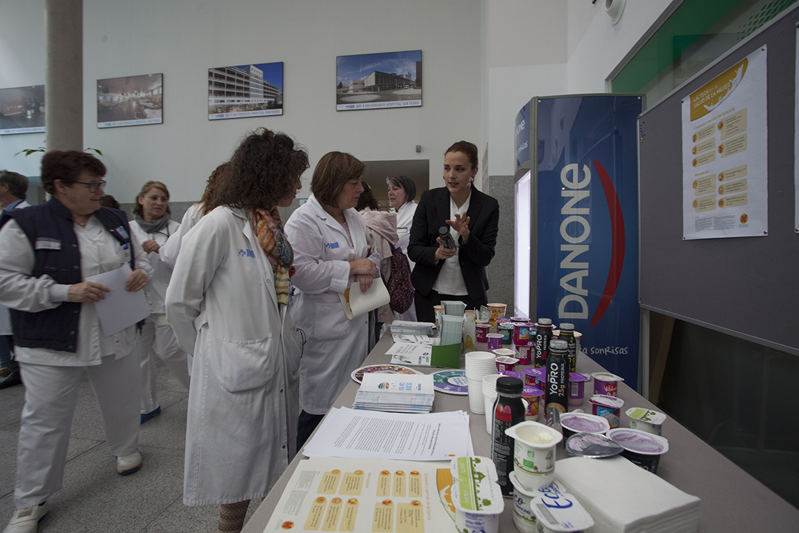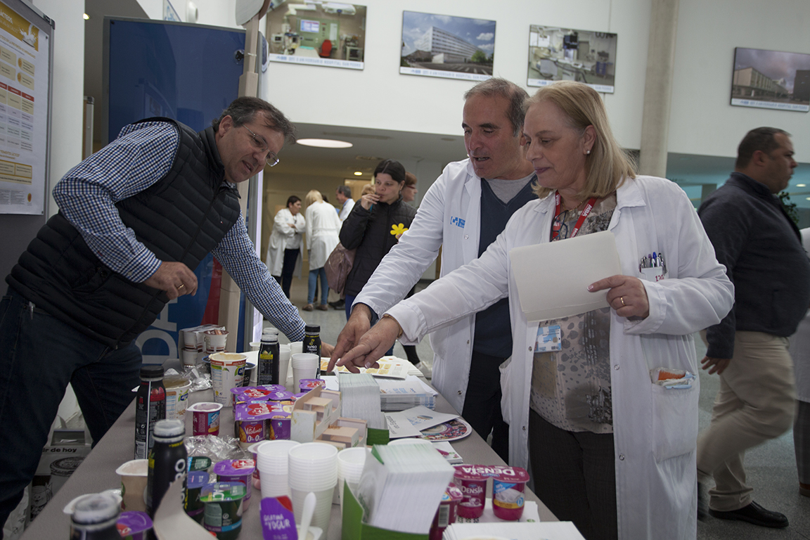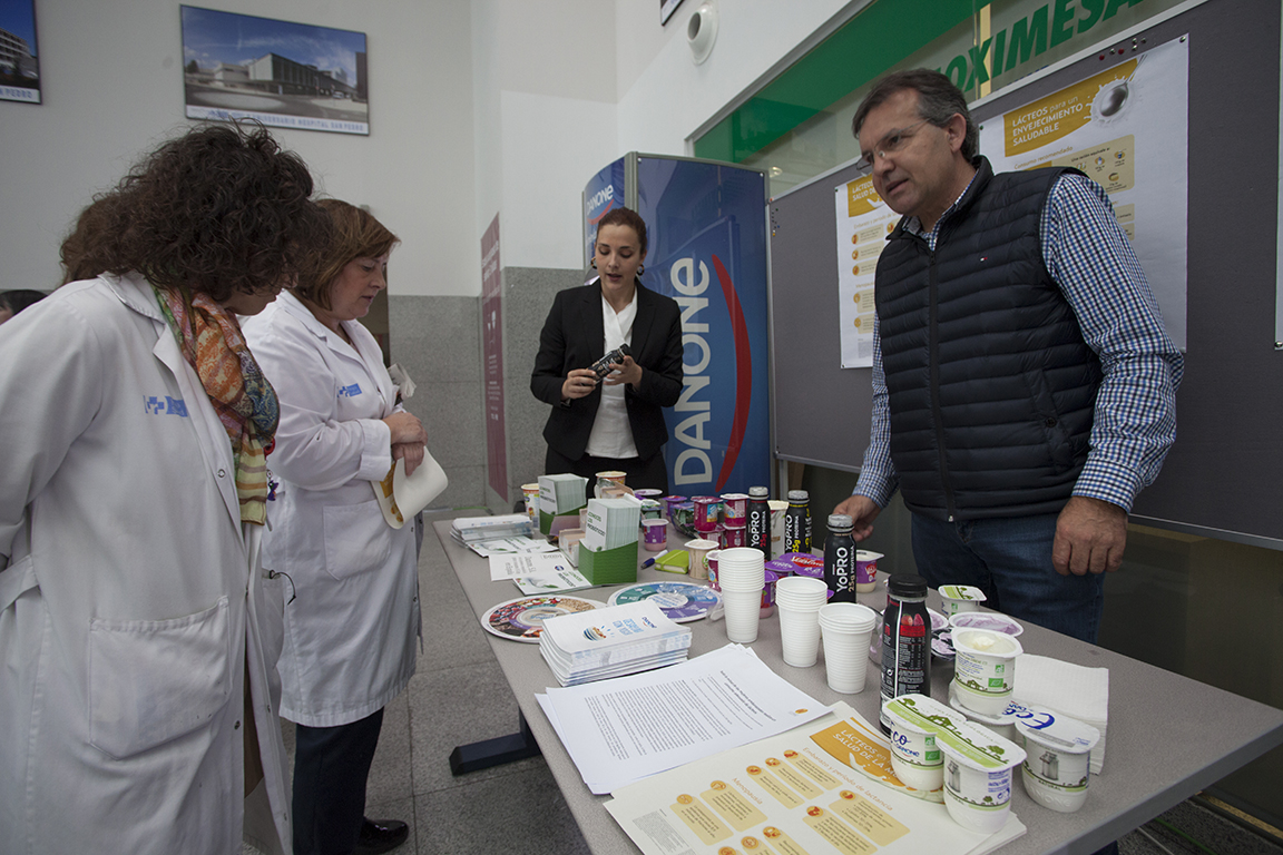 El Servicio de Alimentación del Hospital San Pedro se ha sumado a la celebración del Día Nacional de la Nutrición bajo el lema ‘Lácteos: tenlo claro’, con una exposición de diferentes productos que se podrá visitar durante toda la mañana en el vestíbulo principal del Hospital, y en la que han colaborado, exponiendo sus productos y folletos informativos, entidades como Leche ‘Las Nieves’, Danone y Roca de Cabra.