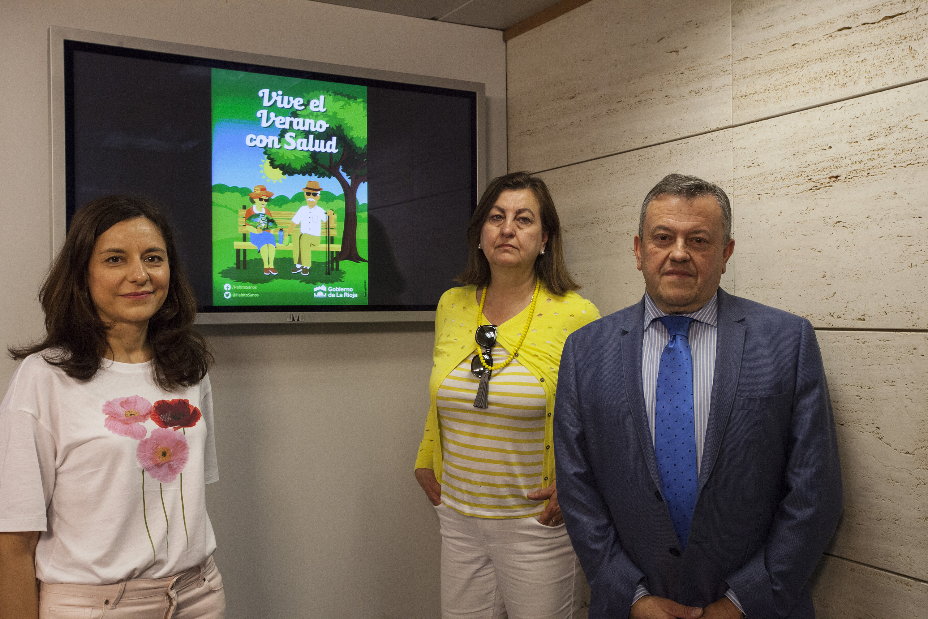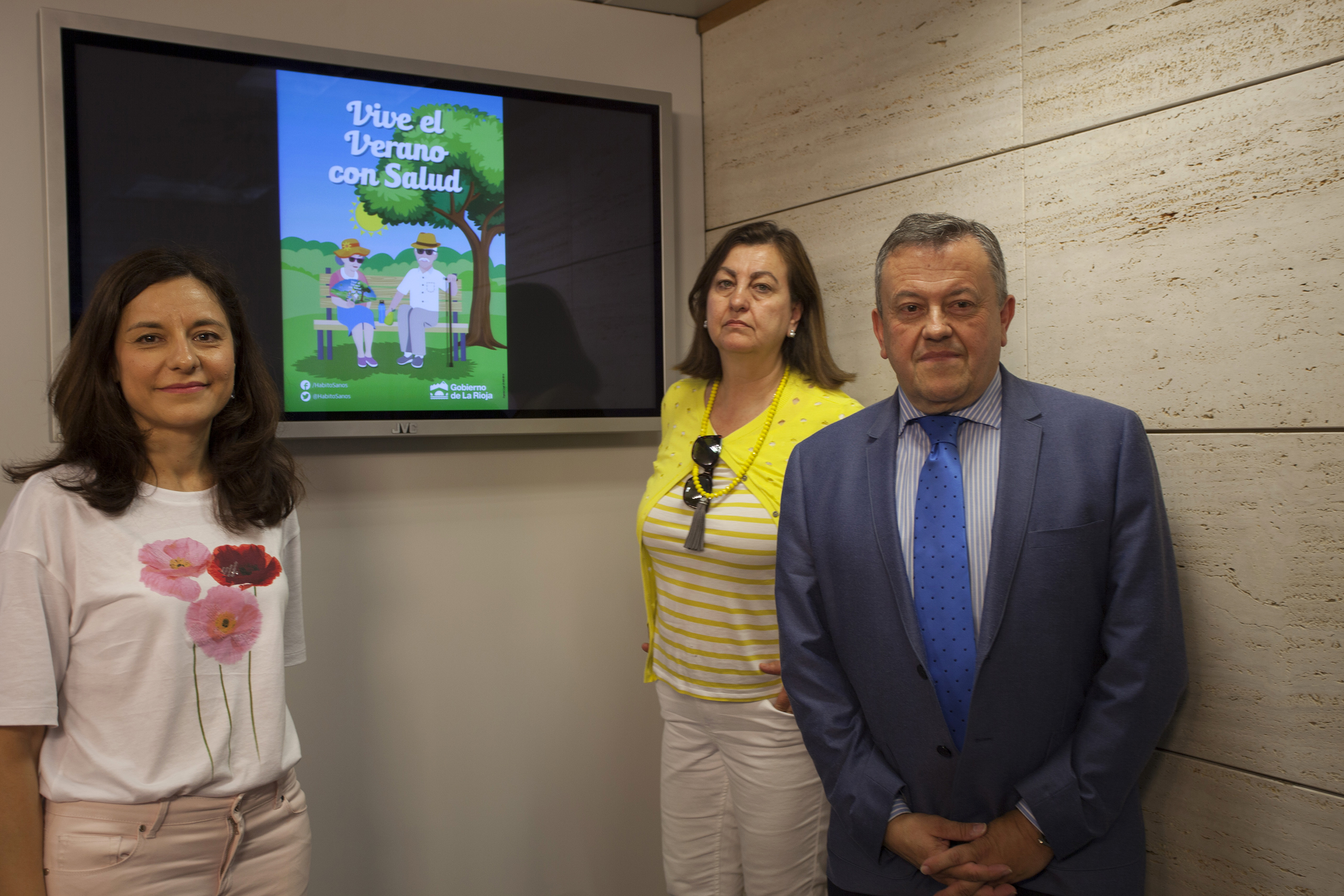 El director general de Salud Pública y Consumo, Juan Ramón Rábade, acompañado por la jefa del servicio de Epidemiología, Eva Martínez, y por la jefa de sección de Programas de Salud del Servicio de Promoción de la Salud, María José López de Valdivielso, ha presentado esta mañana la campaña ‘Vive el verano con salud’, cuyo objetivo es sensibilizar a la población, especialmente a las personas de mayor edad, sobre el cuidado de la salud en el verano.