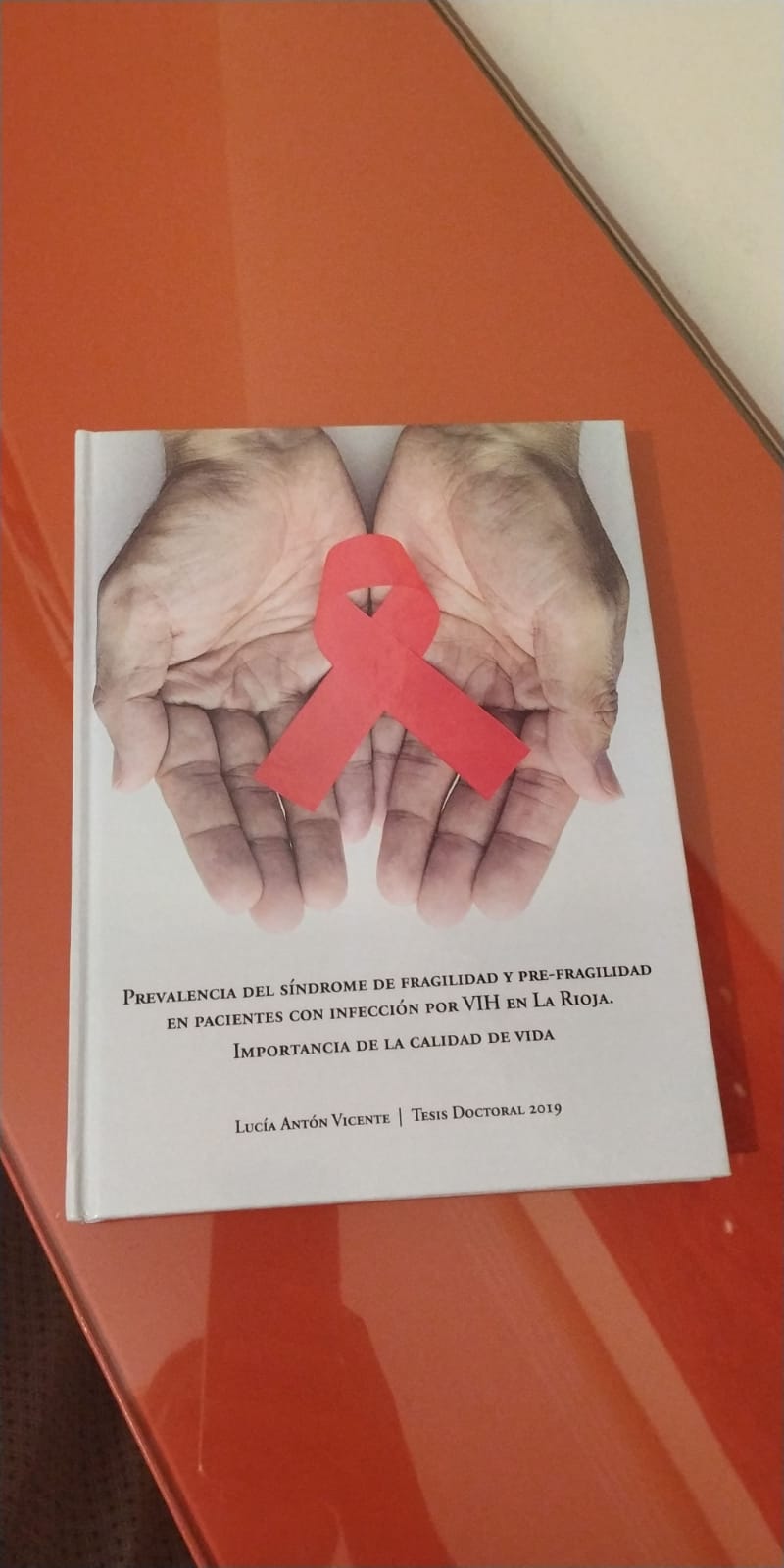 Lucía Antón Vicente* ha obtenido el grado de doctor por la Universidad de La Rioja, con calificación de sobresaliente cum laude, con su tesis titulada "Prevalencia de fragilidad y pre-fragilidad en pacientes por VIH en La Rioja. Importancia de la calidad de vida", dirigida por el Dr. José Antonio Oteo y por Dr. José Ramón Blanco, del Centro de Investigación Biomédica de La Rioja.