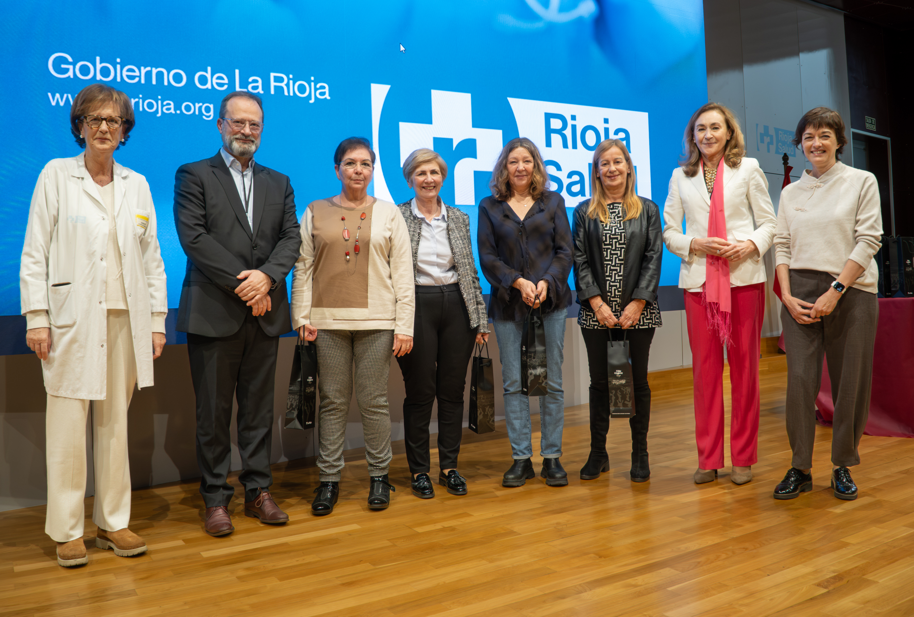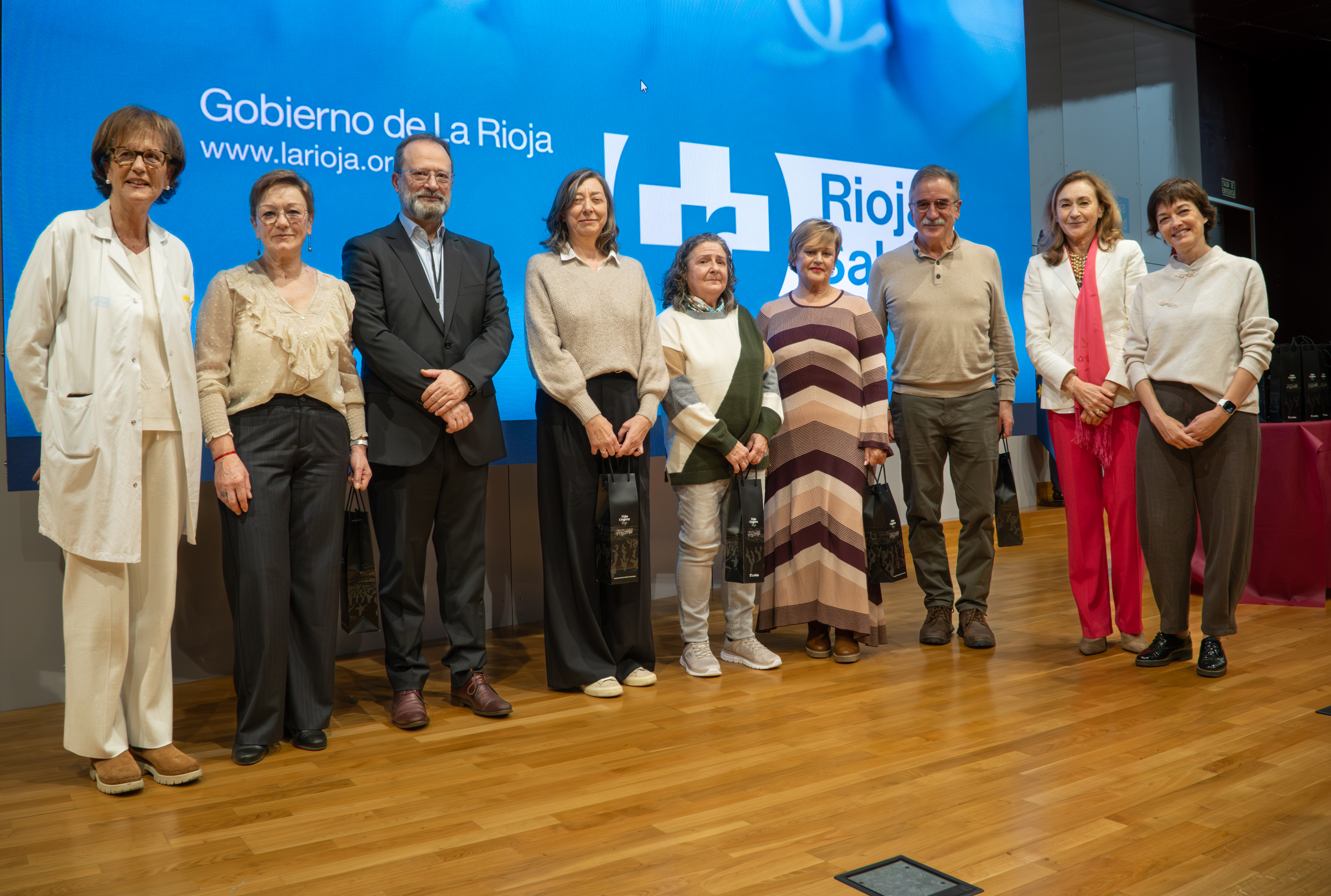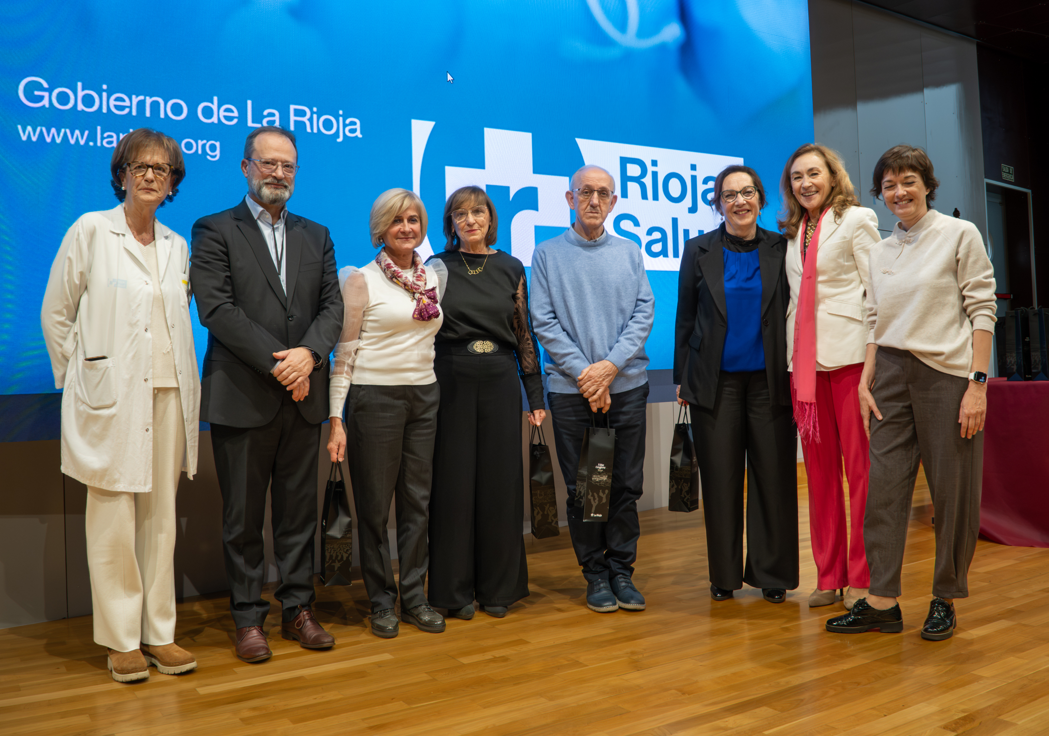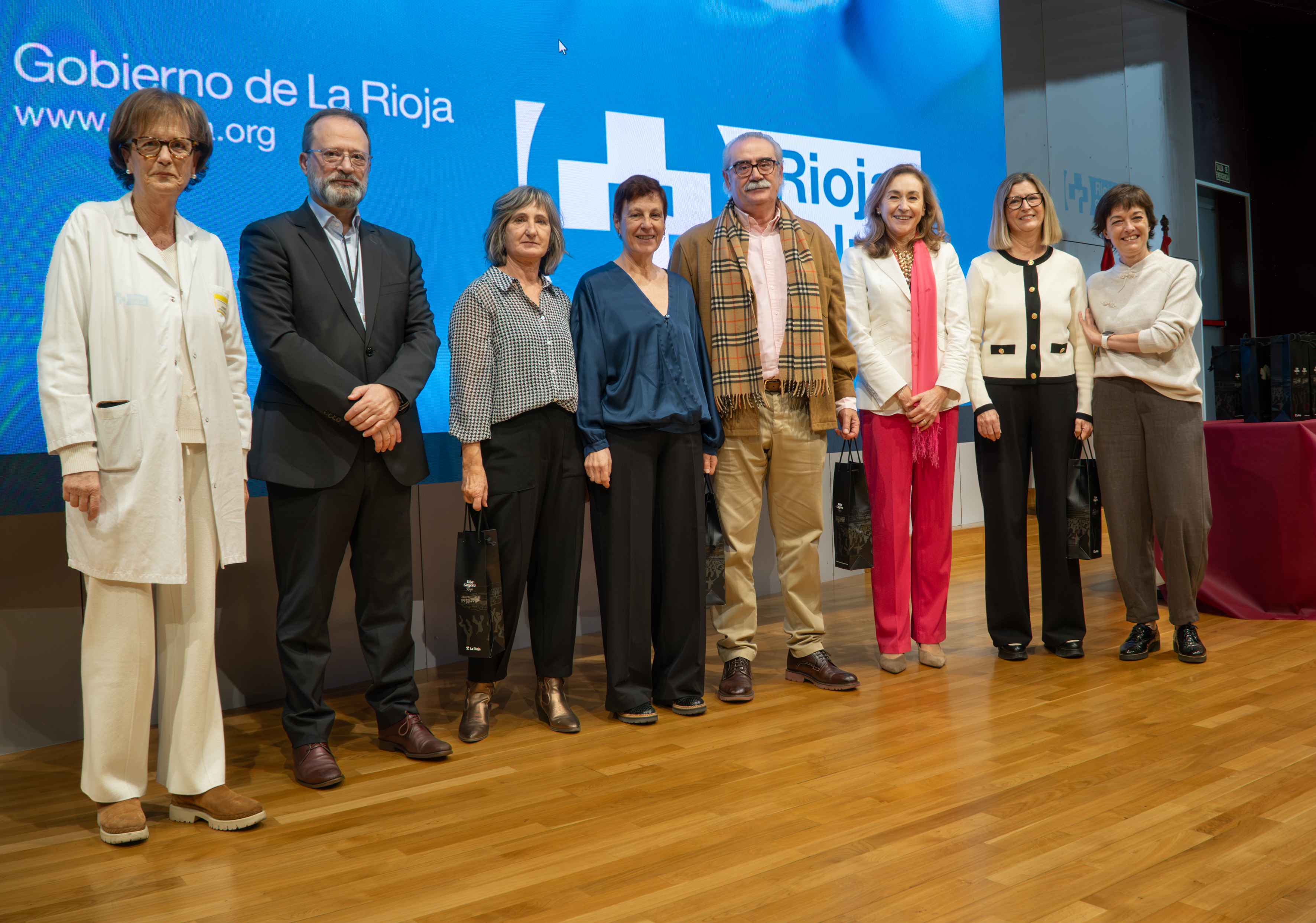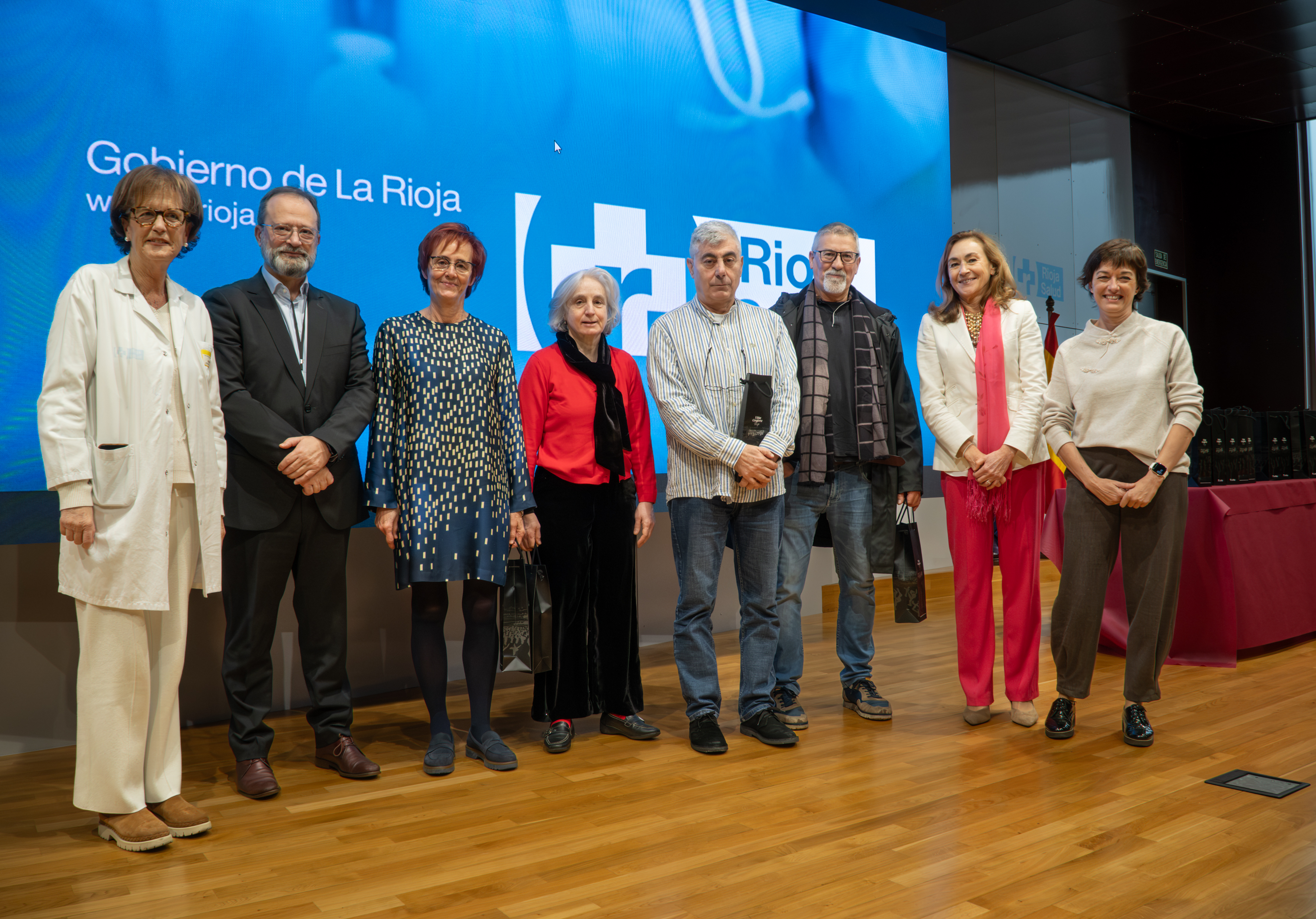 La consejera de Salud y Políticas Sociales, María Martín, acompañada por el gerente del SERIS, Luis Ángel González, ha participado hoy, 19 de diciembre, en Logroño, en el homenaje que el Servicio Riojano de Salud (SERIS) ha brindado a los 136 profesionales de Atención Primaria y Hospitalaria que se han jubilado a lo largo de 2025.