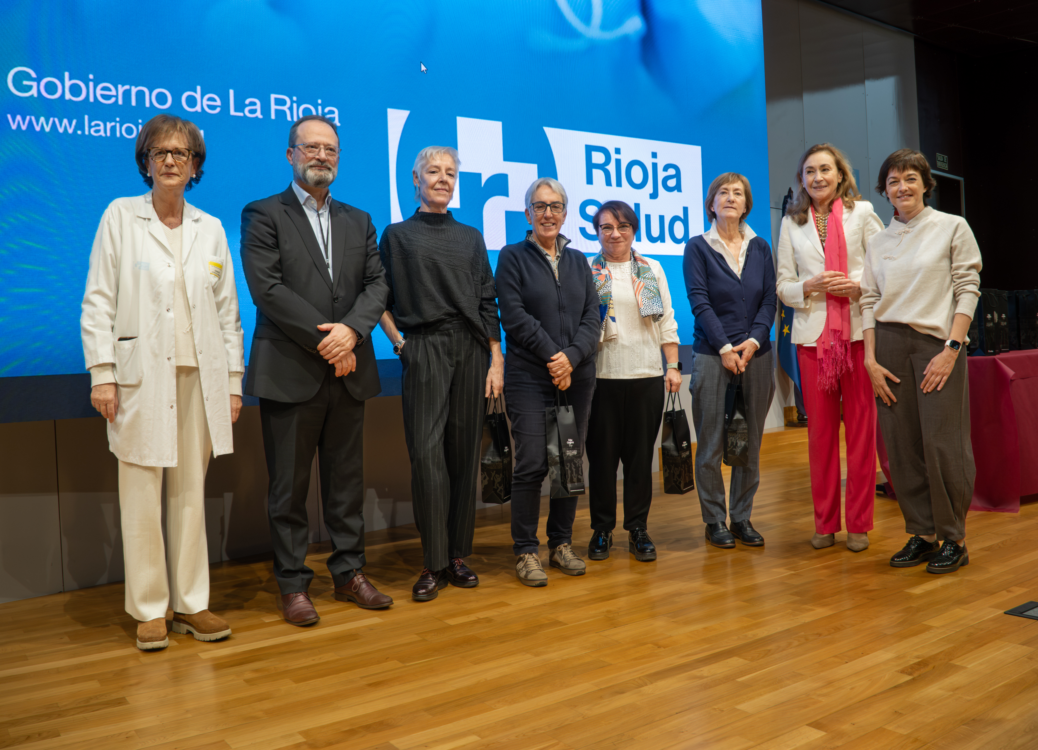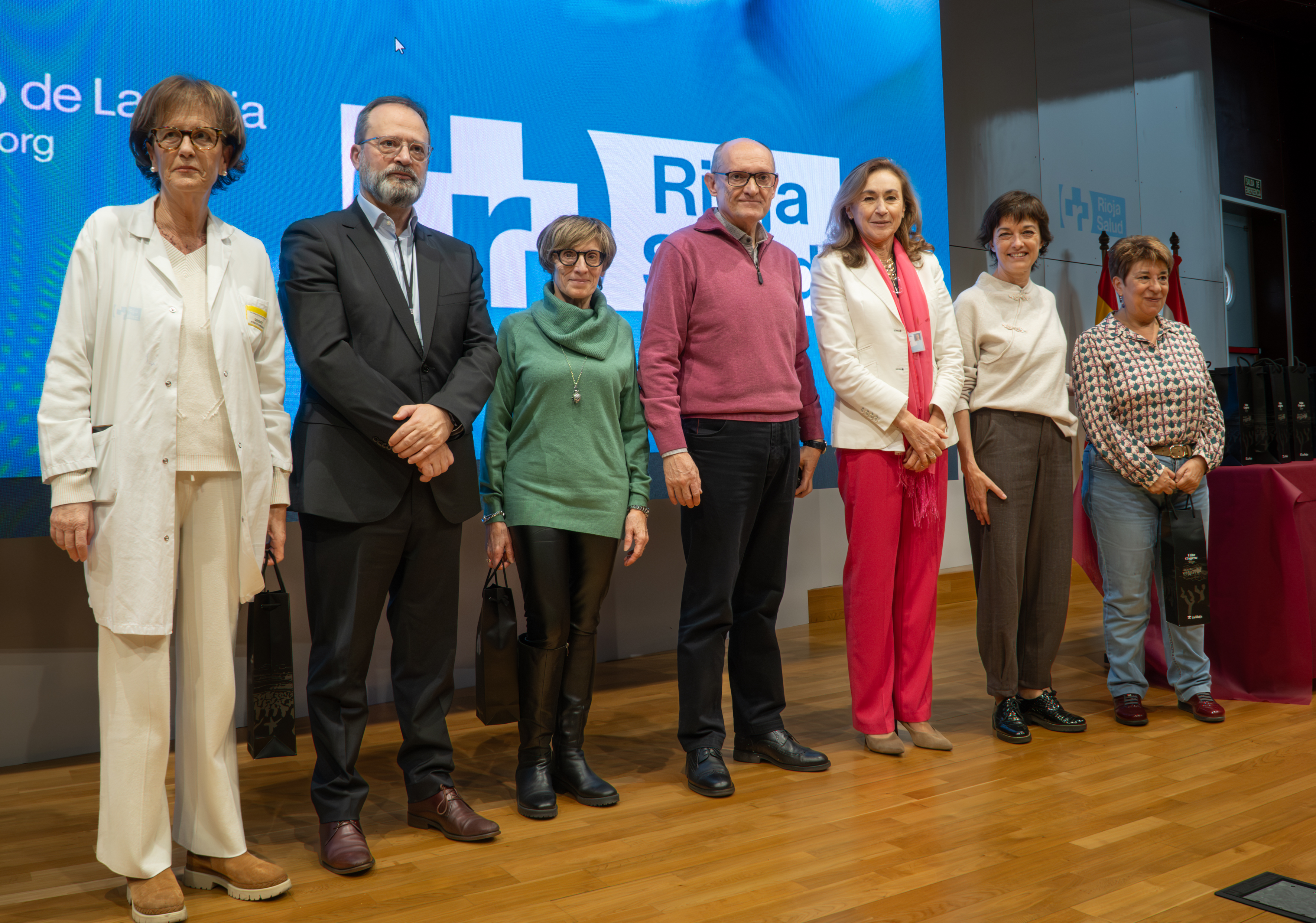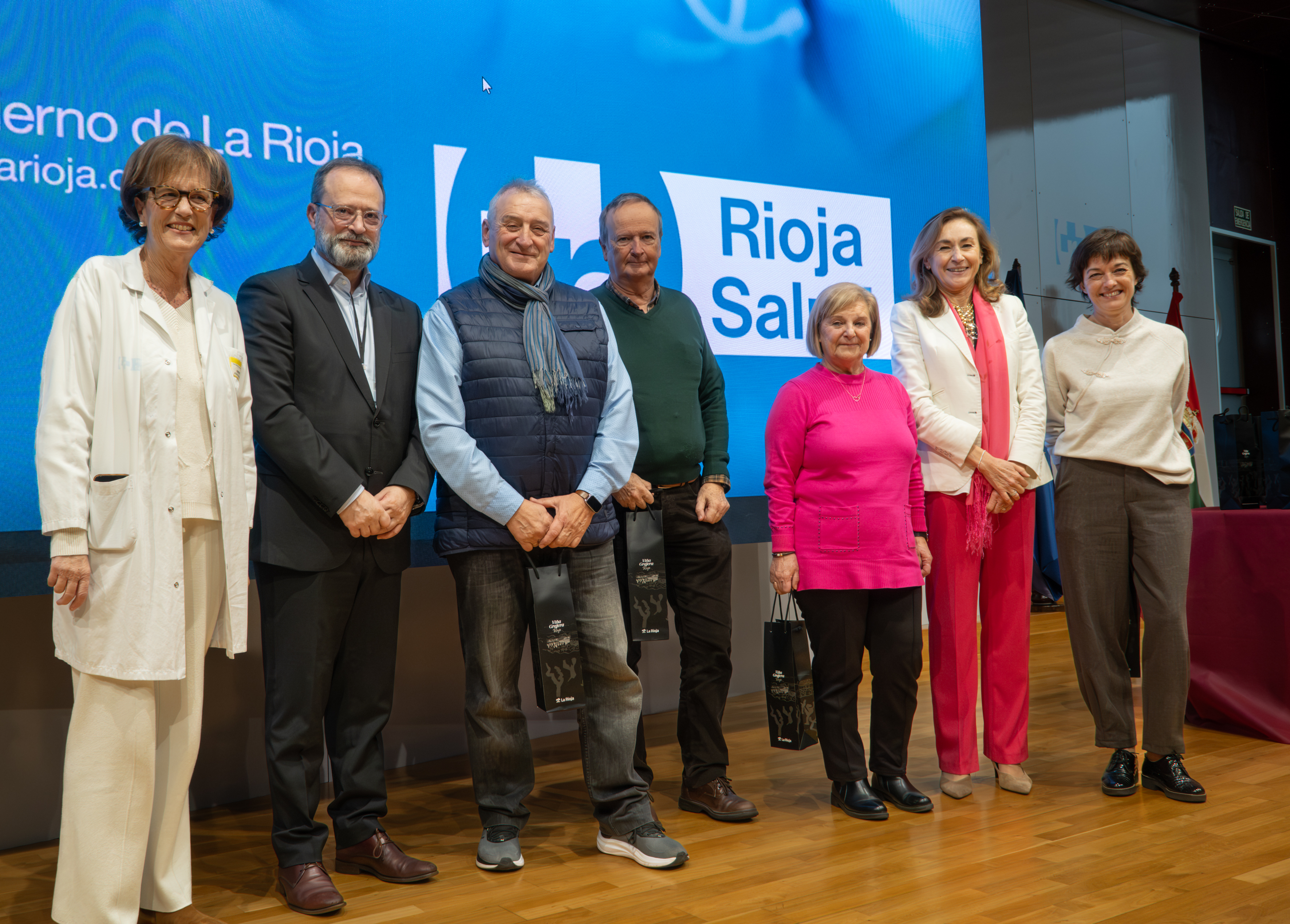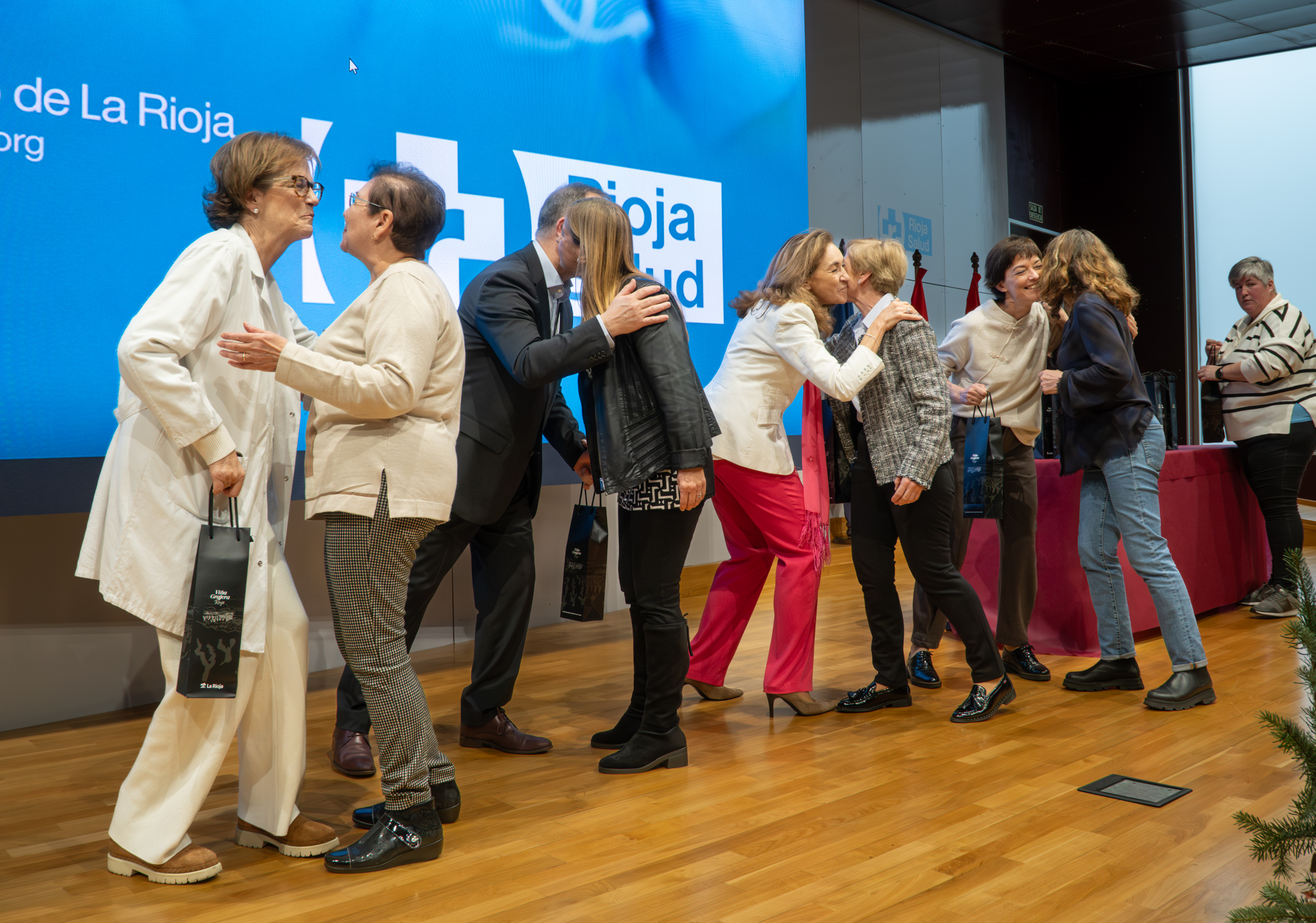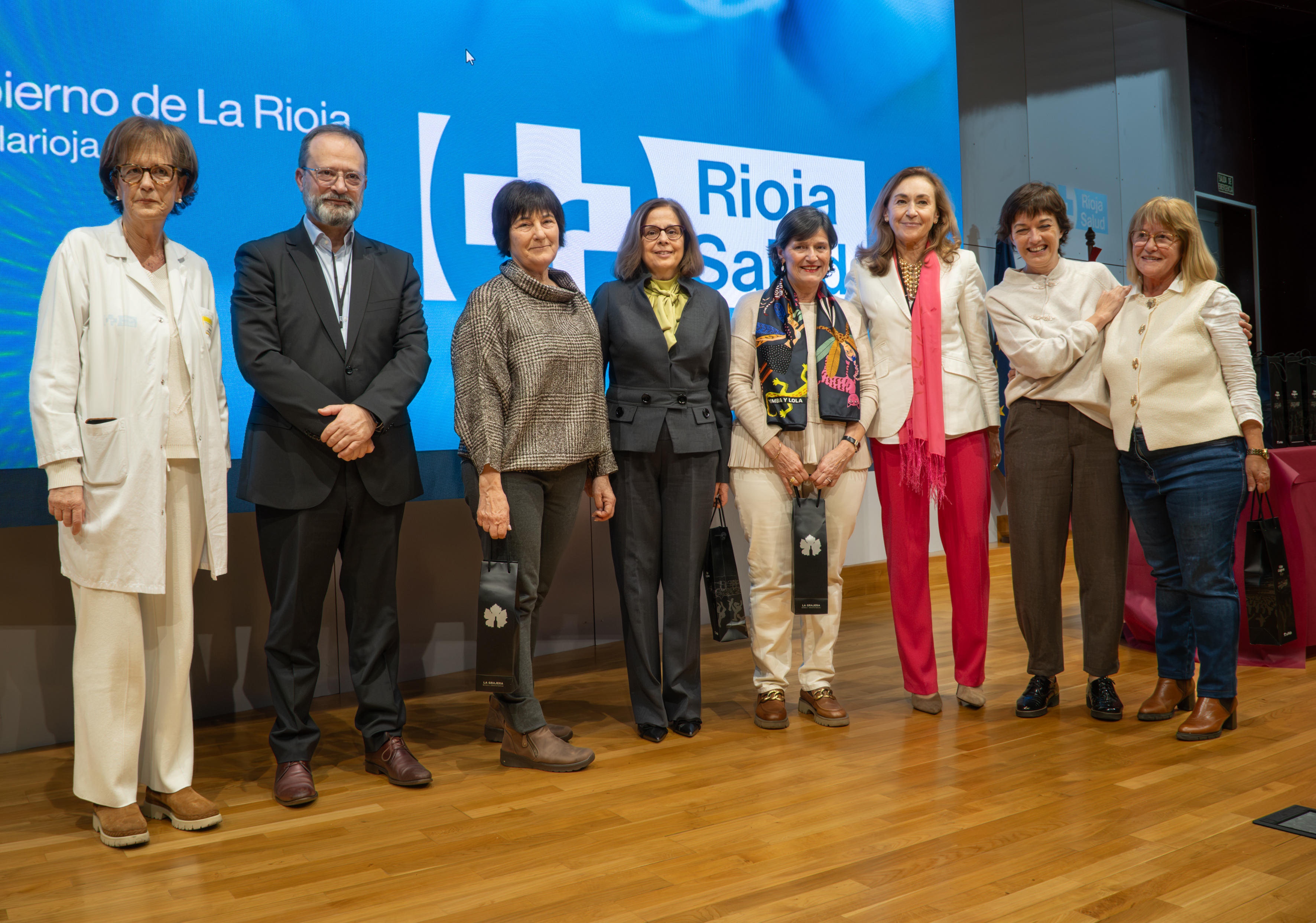 La consejera de Salud y Políticas Sociales, María Martín, acompañada por el gerente del SERIS, Luis Ángel González, ha participado hoy, 19 de diciembre, en Logroño, en el homenaje que el Servicio Riojano de Salud (SERIS) ha brindado a los 136 profesionales de Atención Primaria y Hospitalaria que se han jubilado a lo largo de 2025.