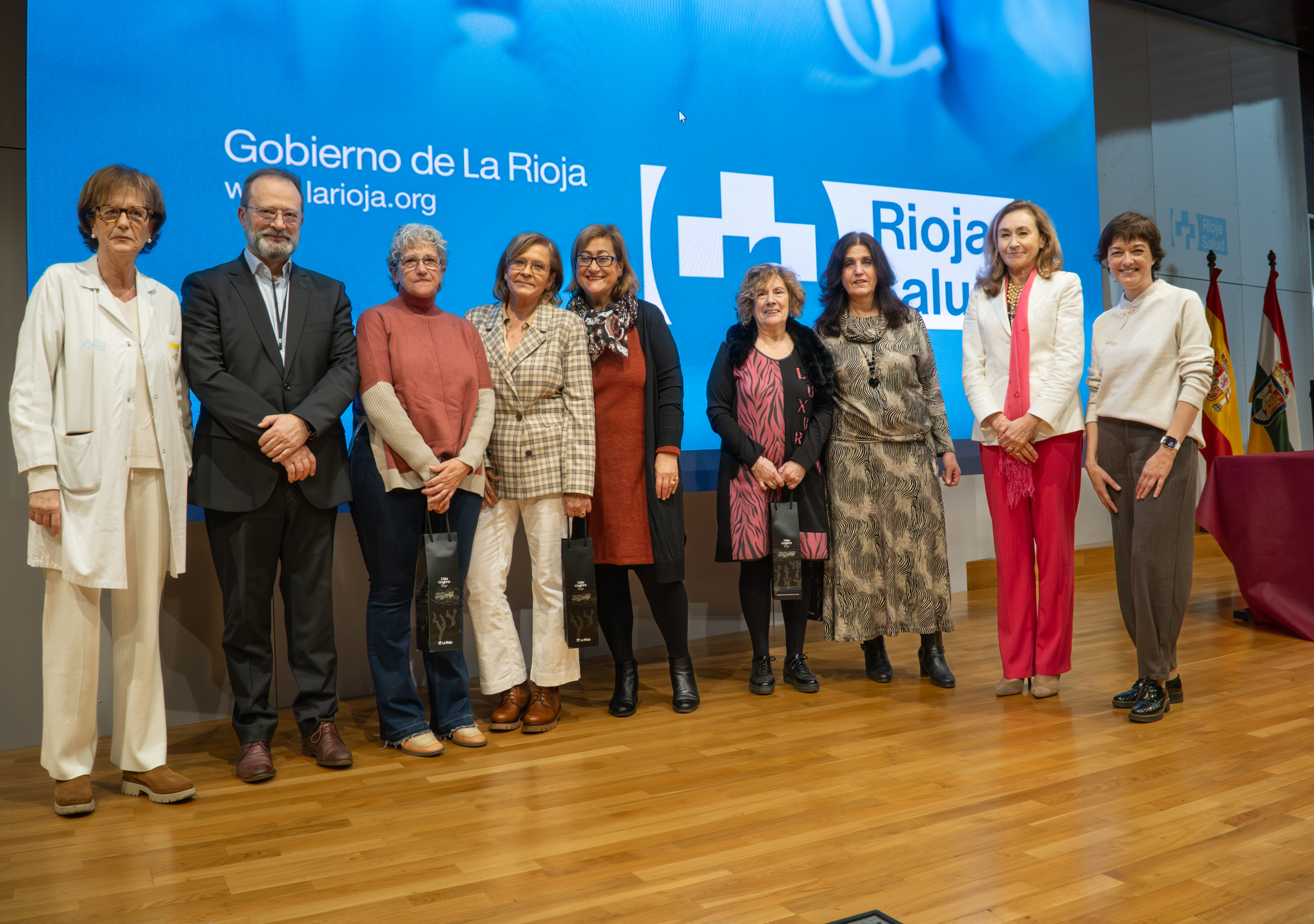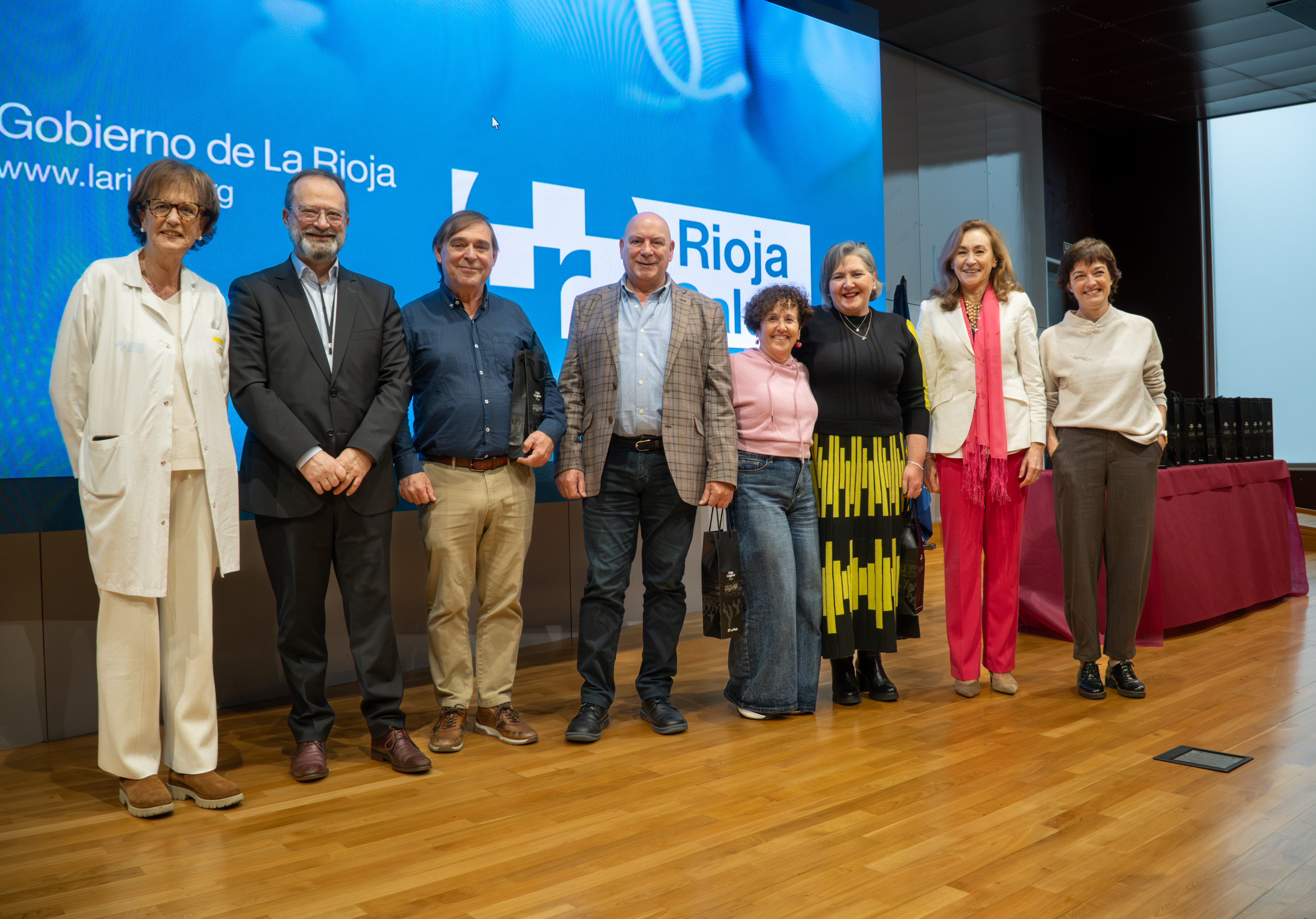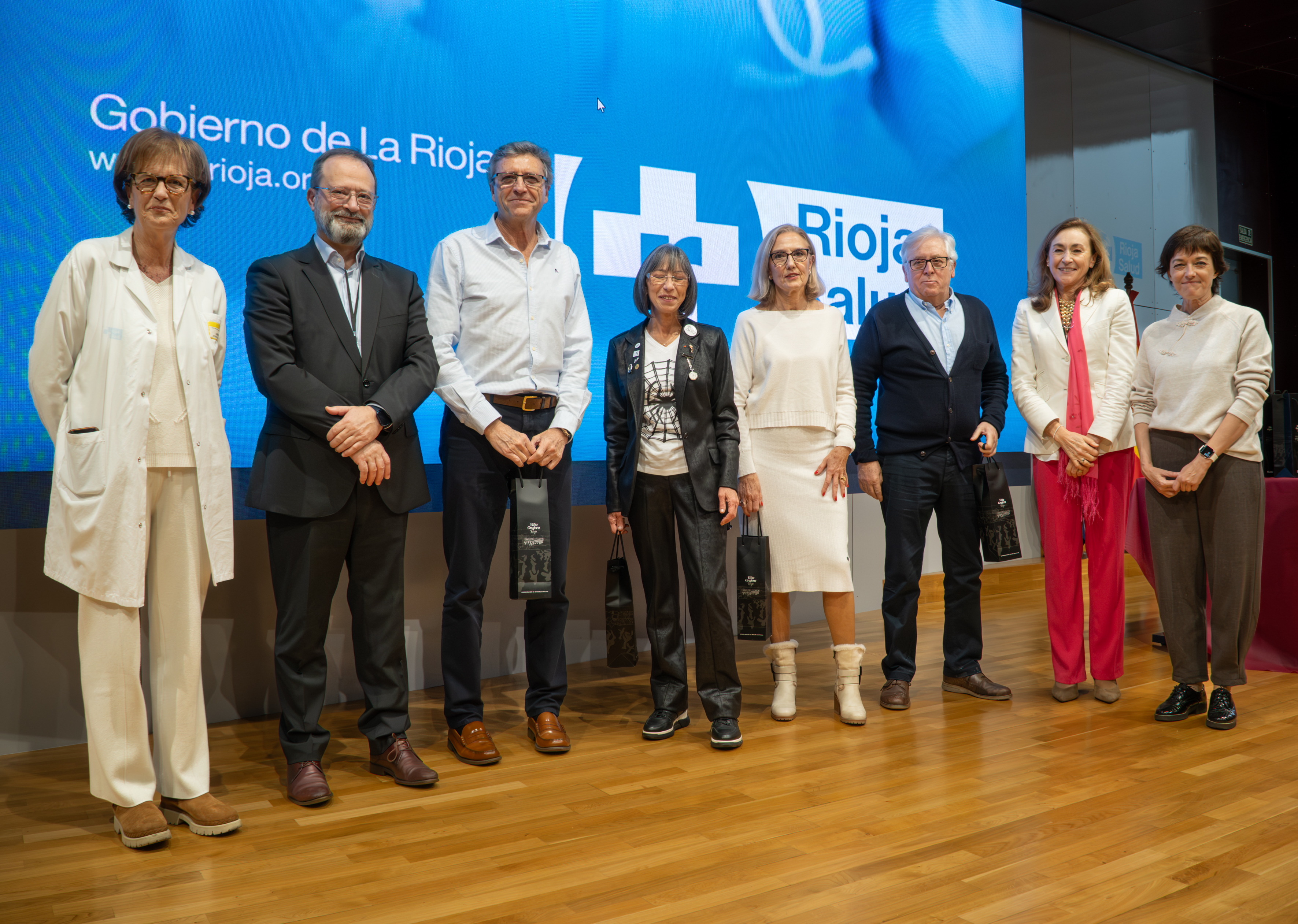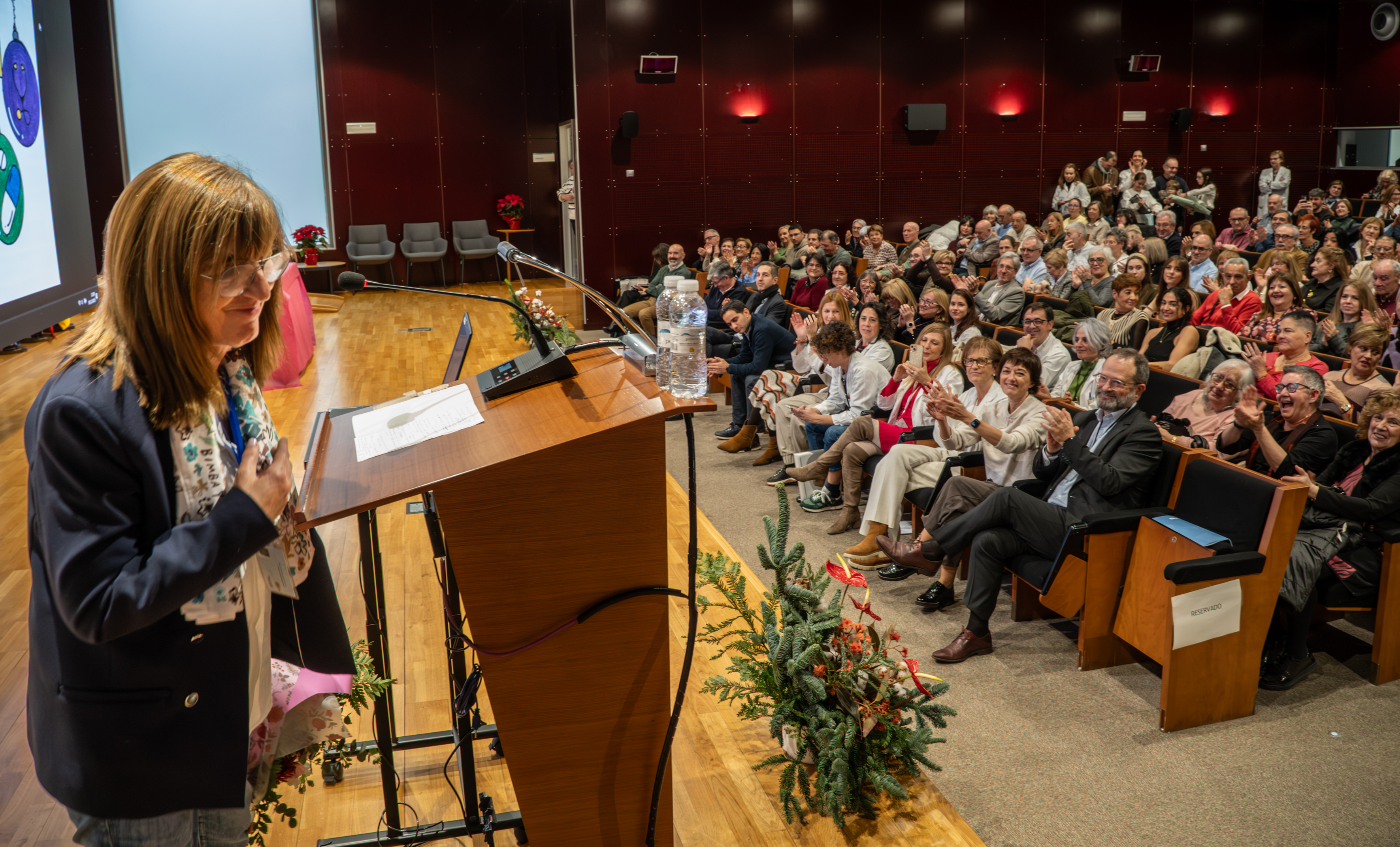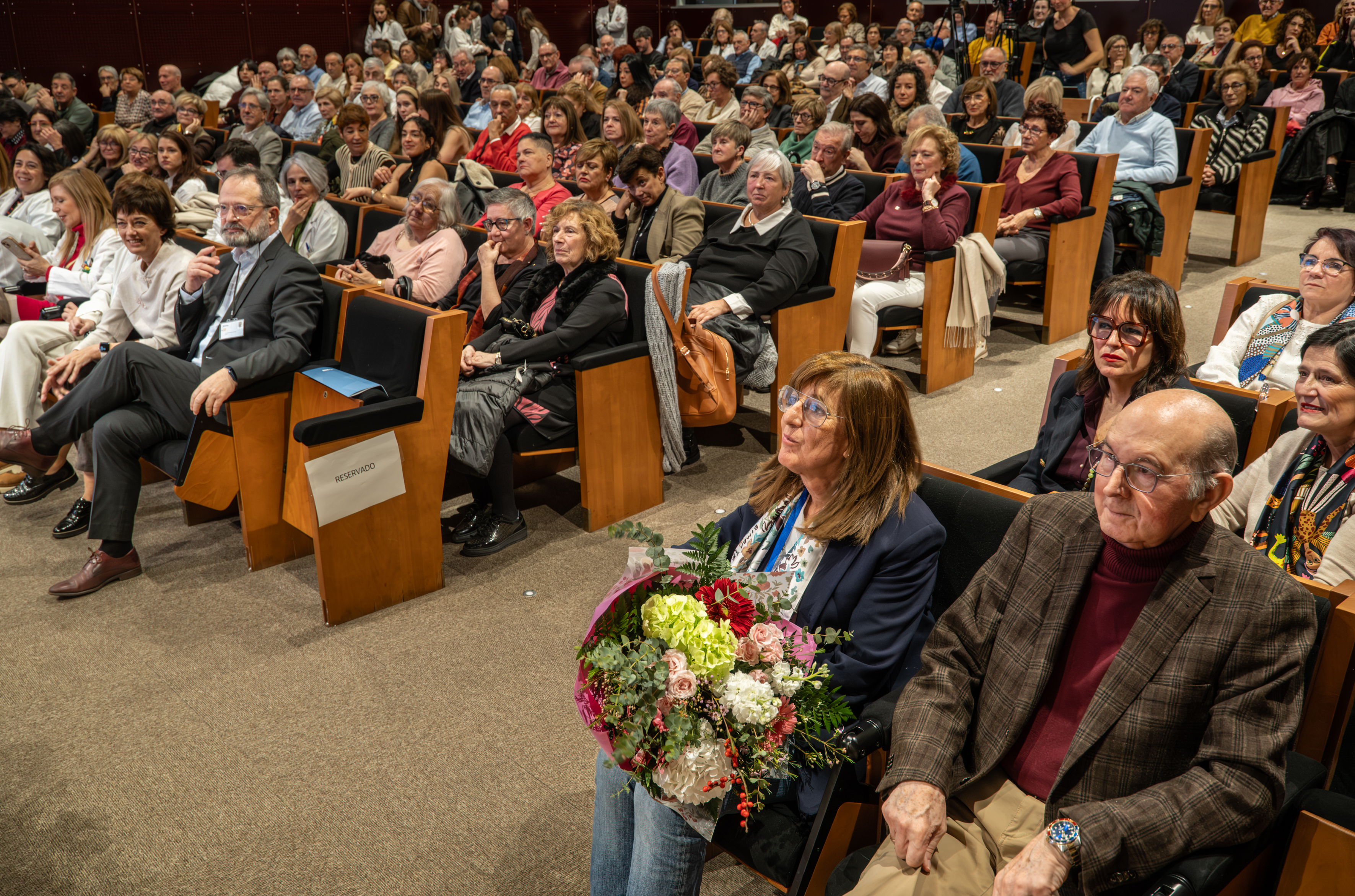 La consejera de Salud y Políticas Sociales, María Martín, acompañada por el gerente del SERIS, Luis Ángel González, ha participado hoy, 19 de diciembre, en Logroño, en el homenaje que el Servicio Riojano de Salud (SERIS) ha brindado a los 136 profesionales de Atención Primaria y Hospitalaria que se han jubilado a lo largo de 2025.