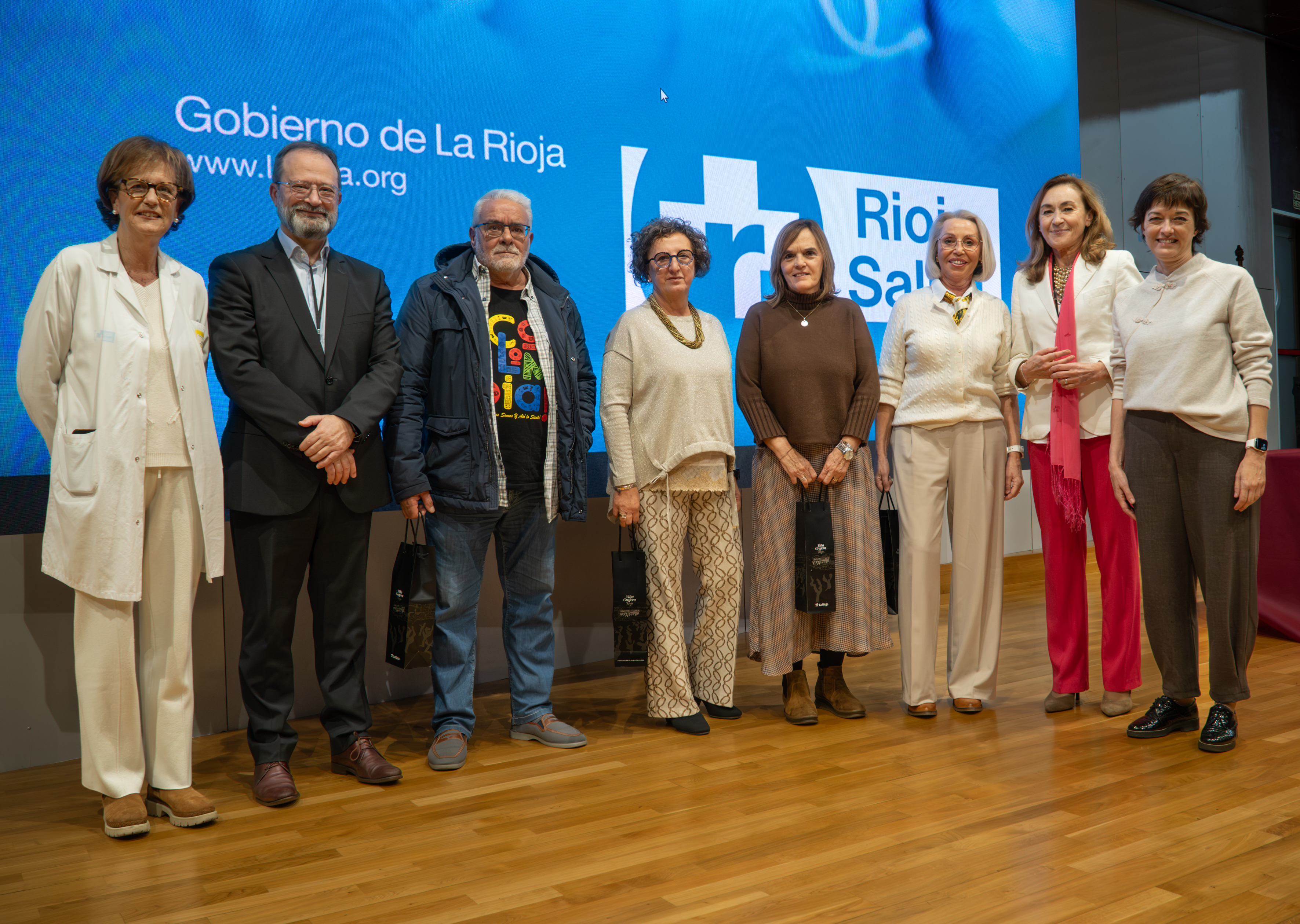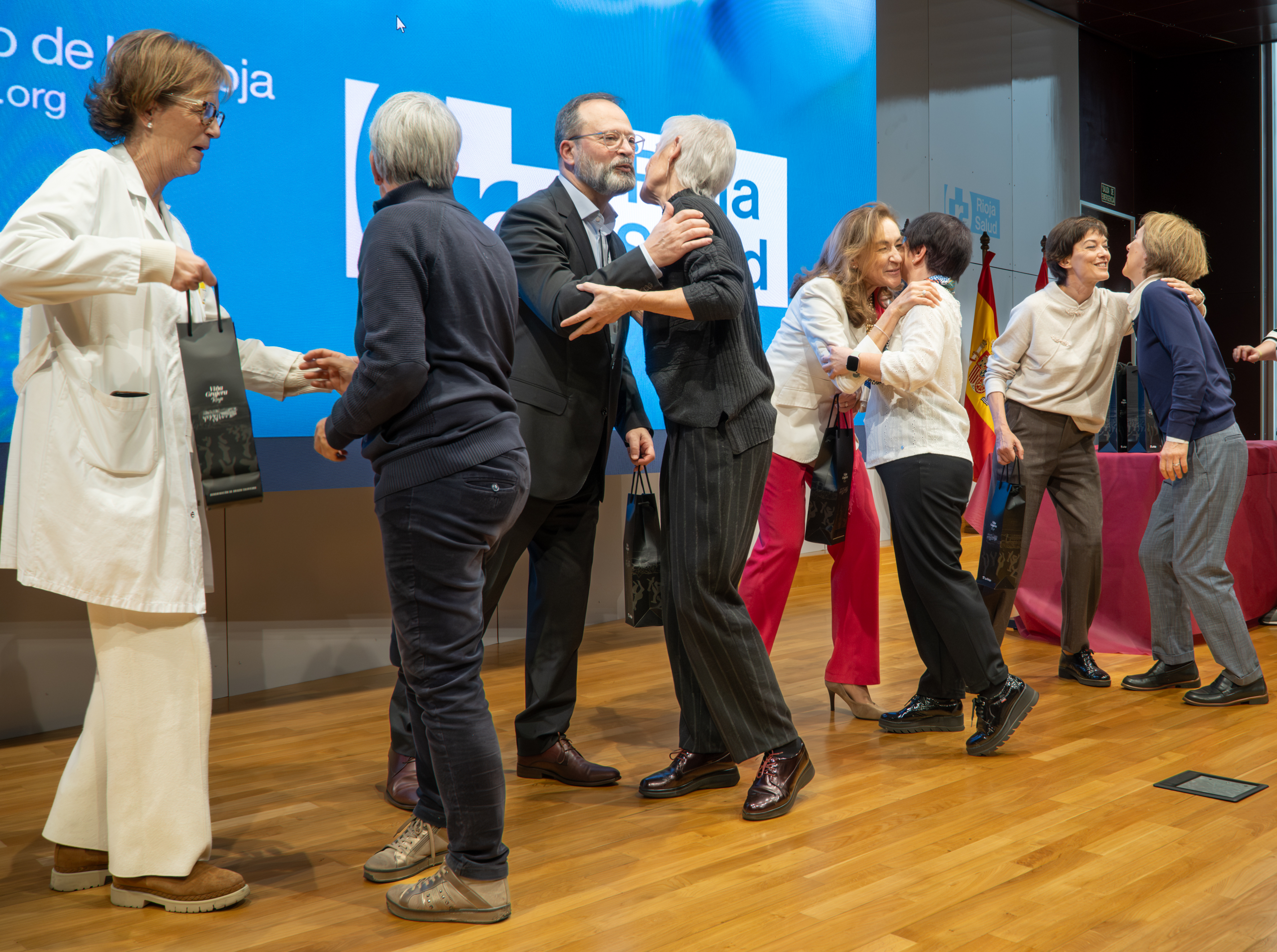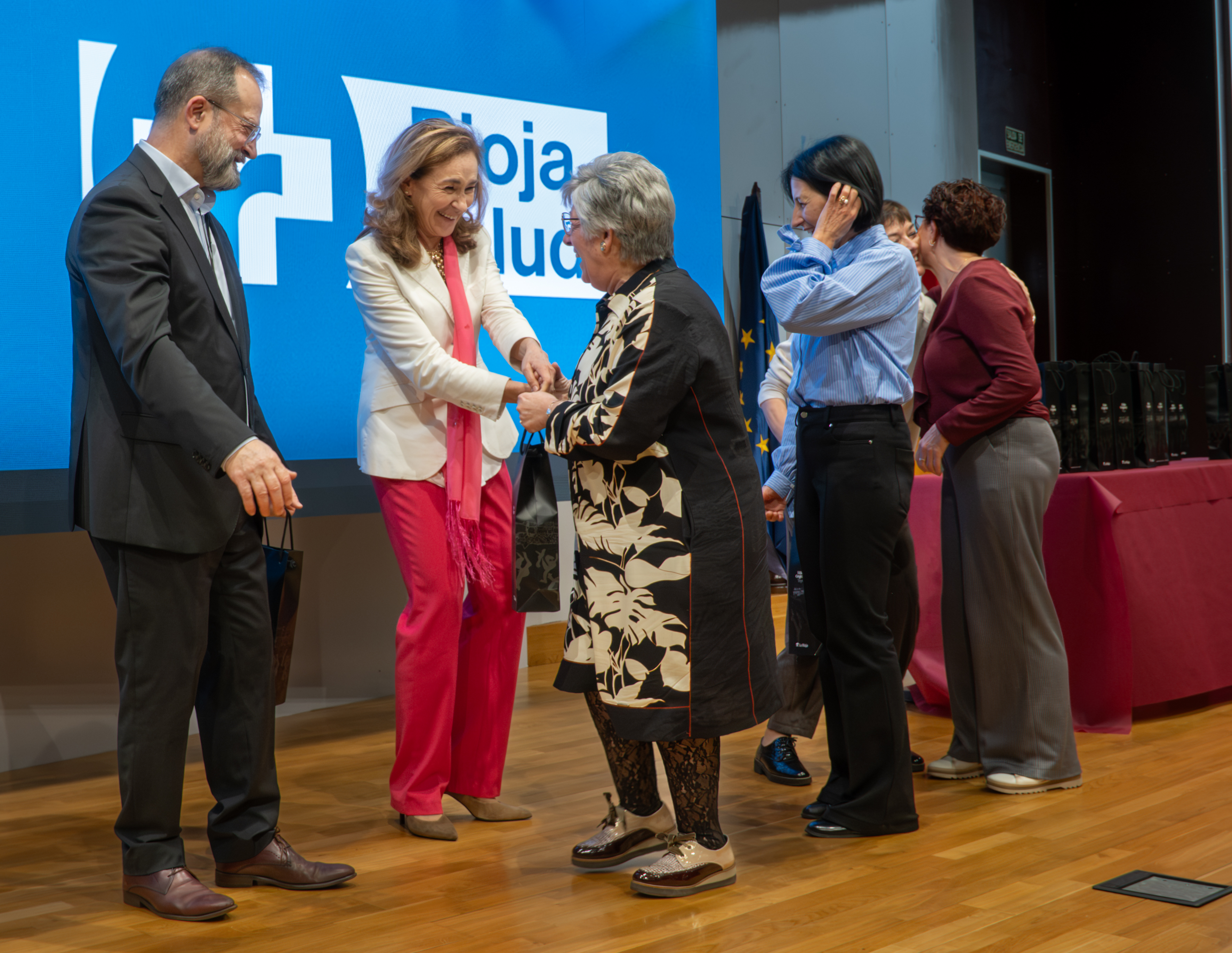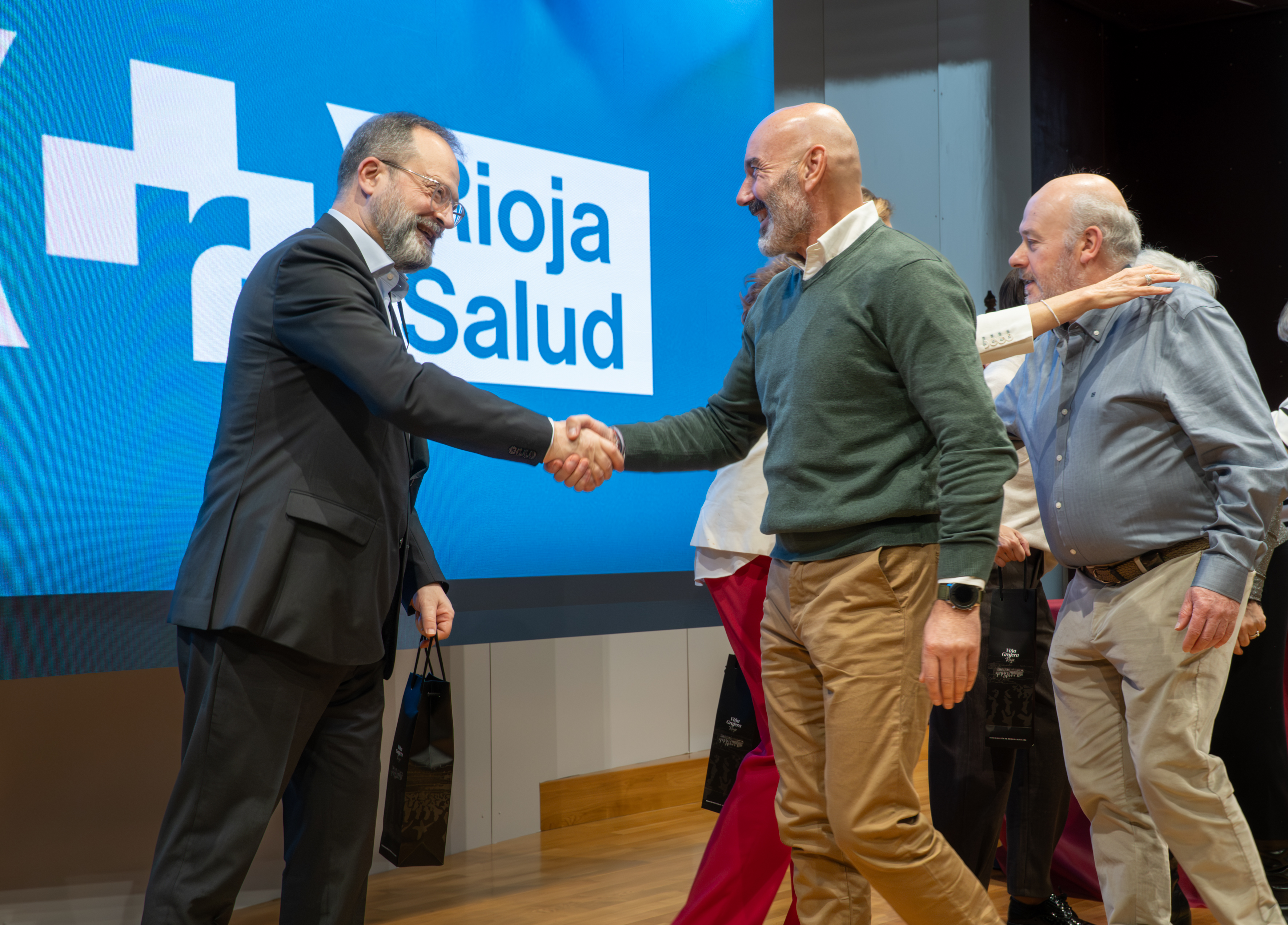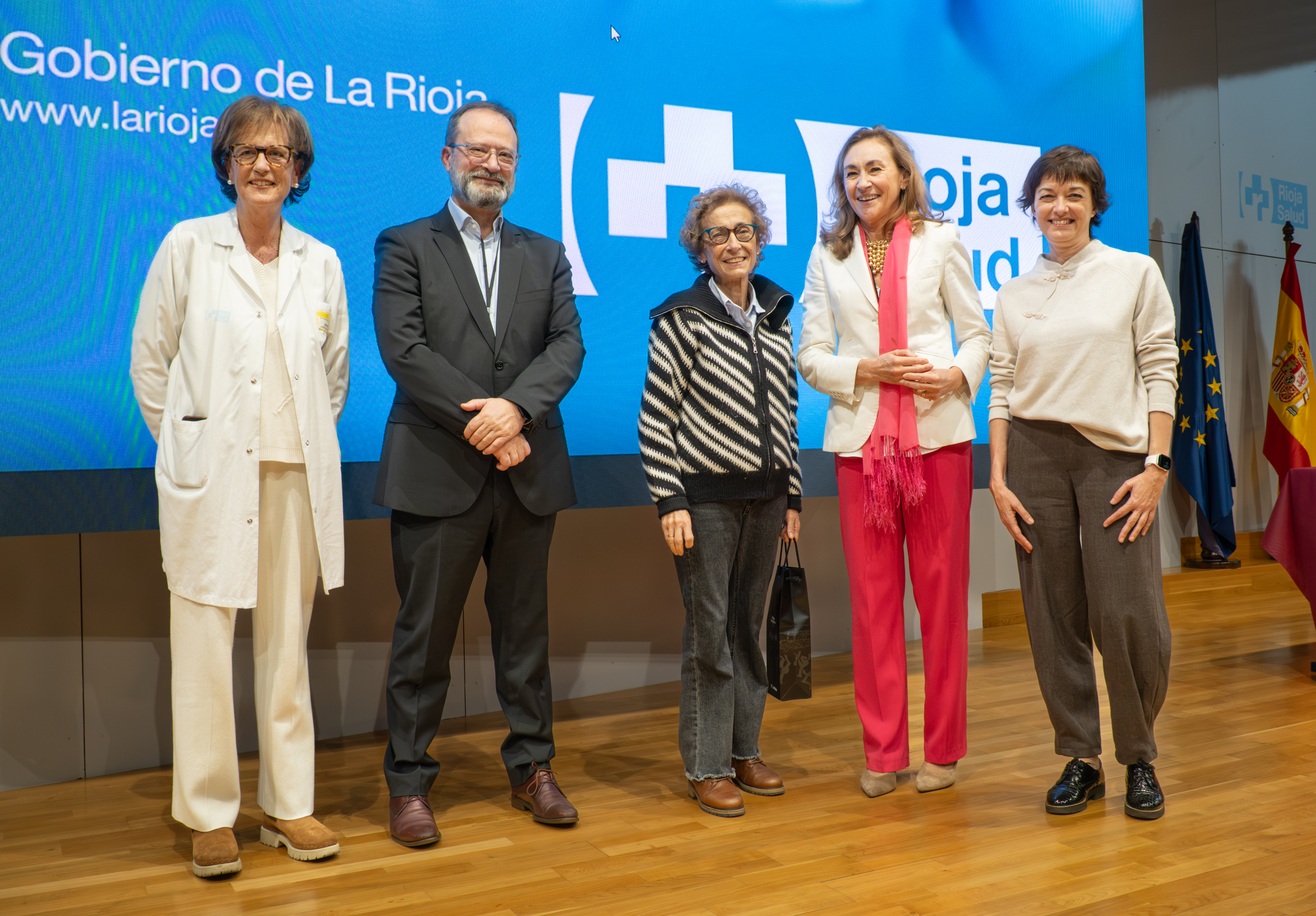 La consejera de Salud y Políticas Sociales, María Martín, acompañada por el gerente del SERIS, Luis Ángel González, ha participado hoy, 19 de diciembre, en Logroño, en el homenaje que el Servicio Riojano de Salud (SERIS) ha brindado a los 136 profesionales de Atención Primaria y Hospitalaria que se han jubilado a lo largo de 2025.