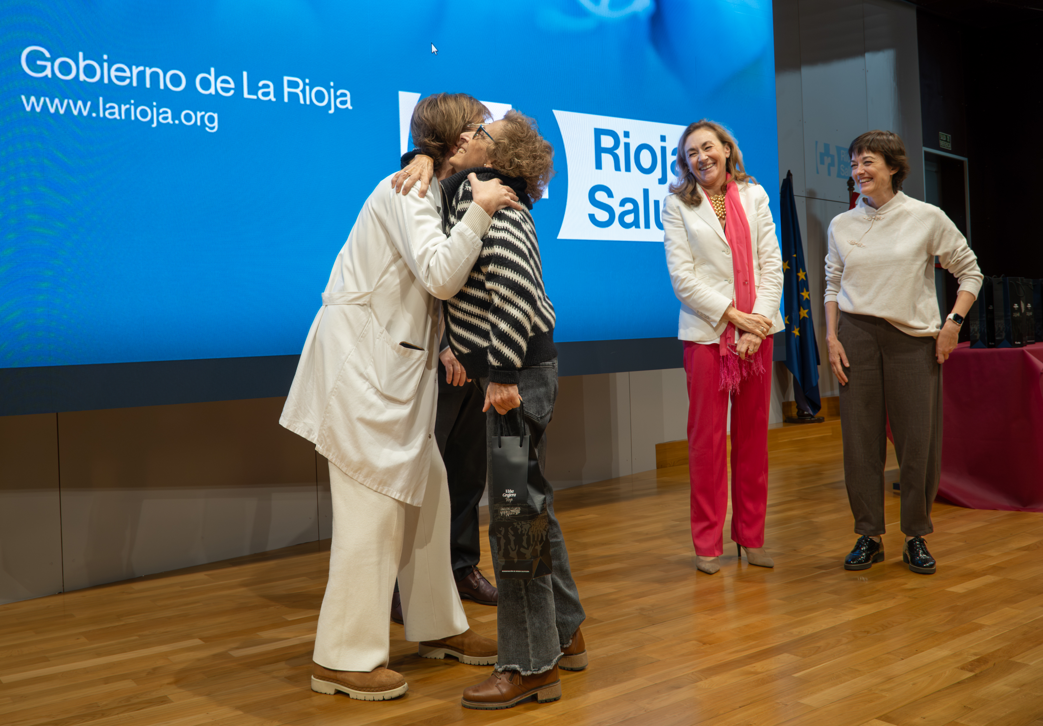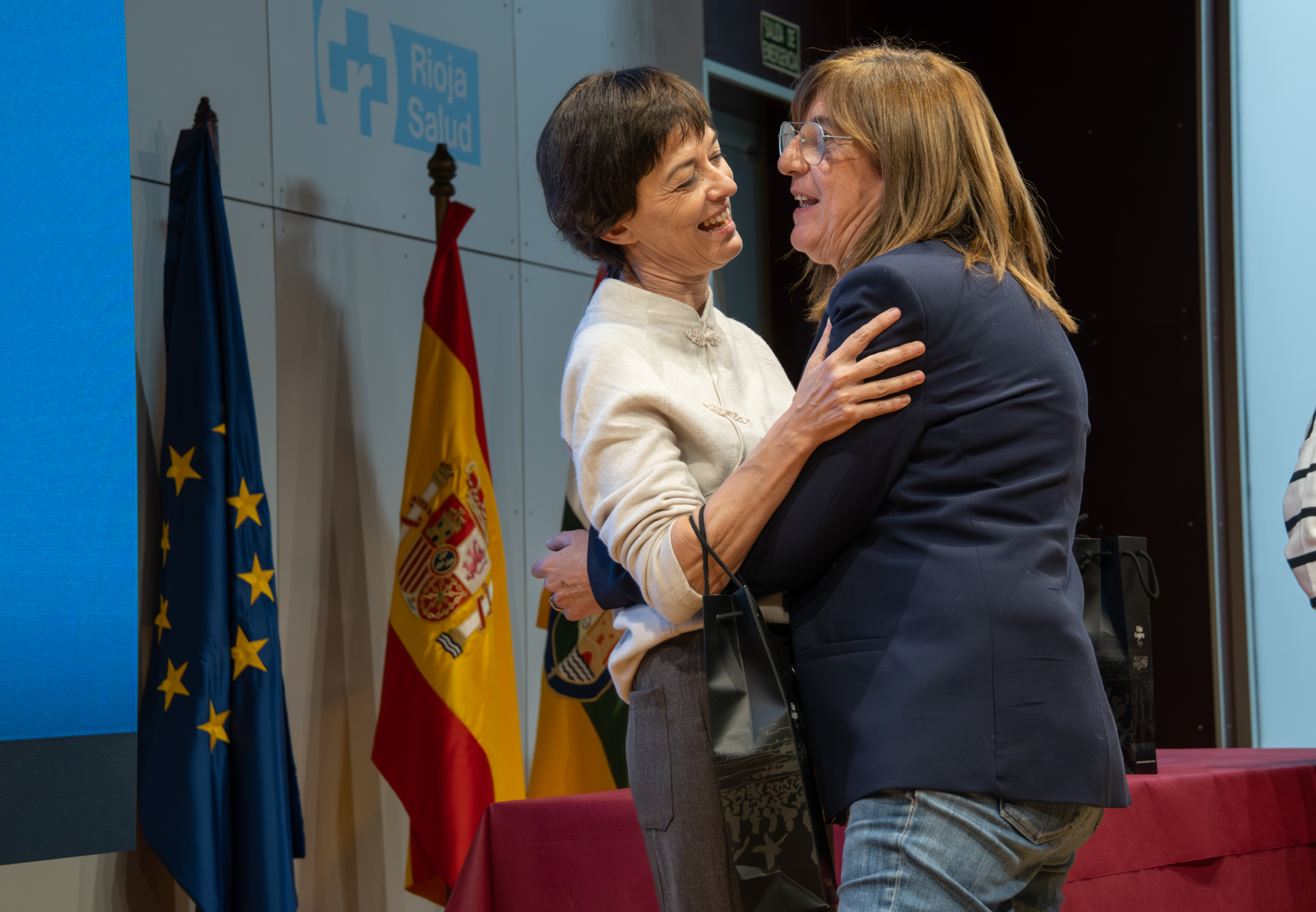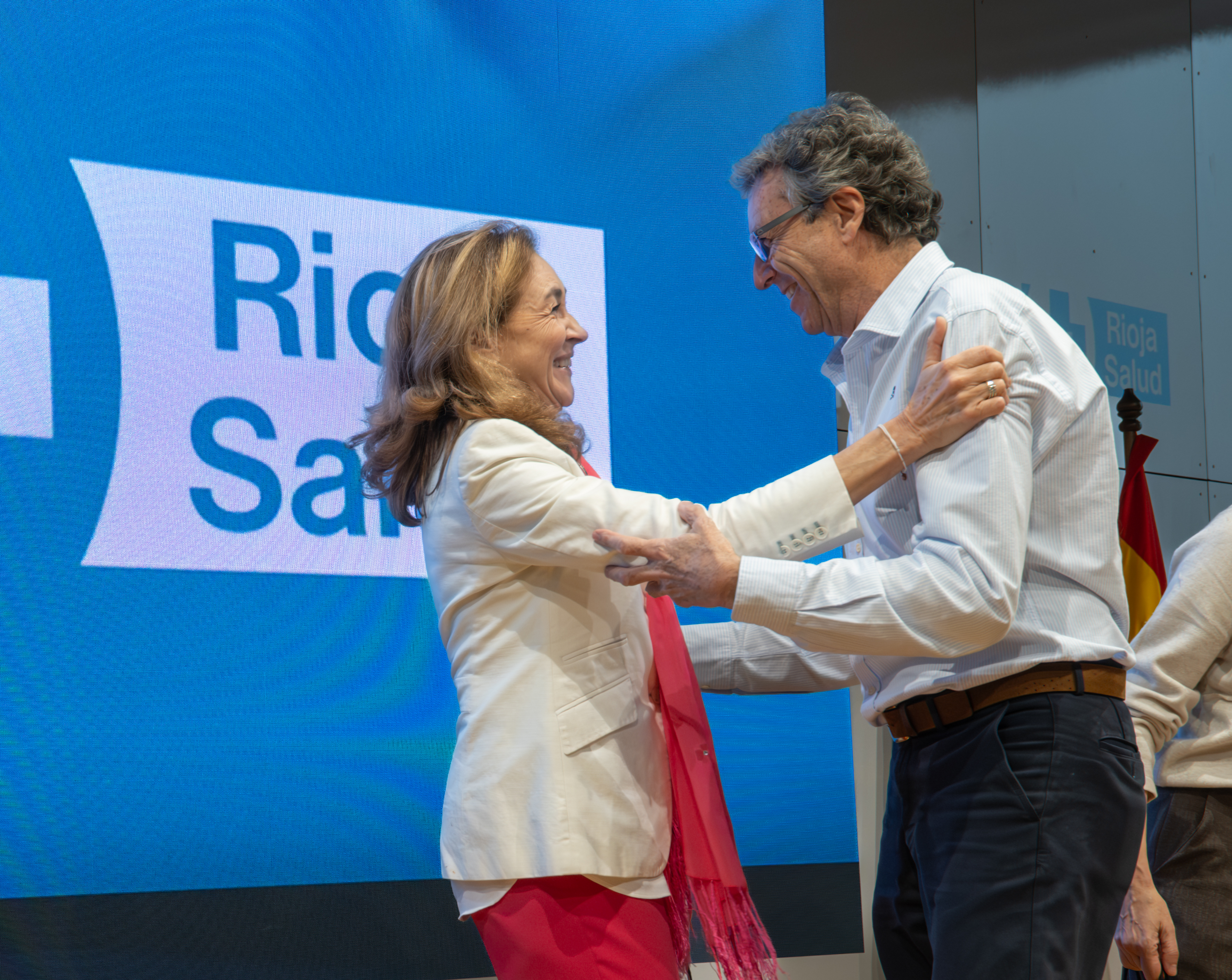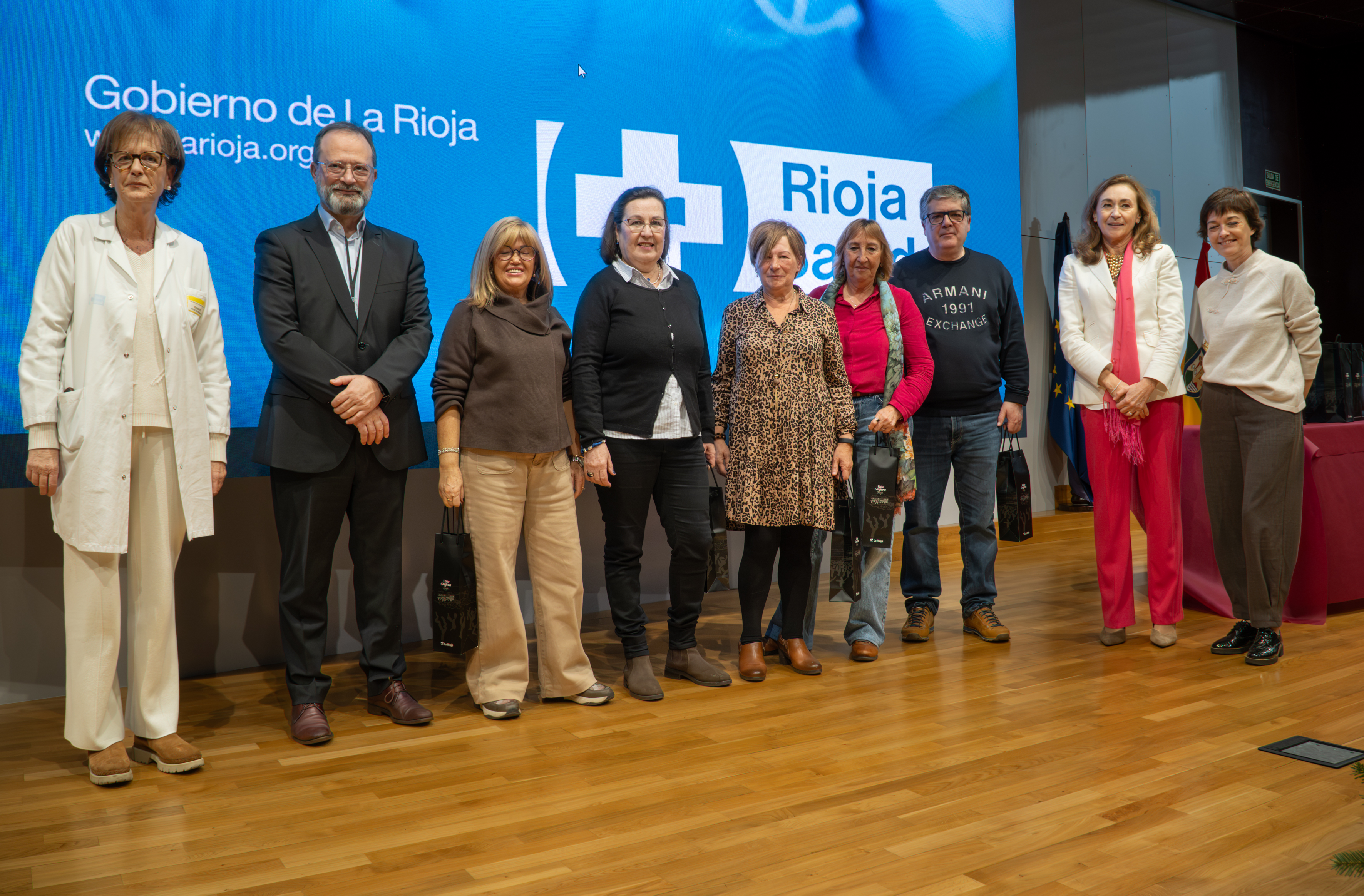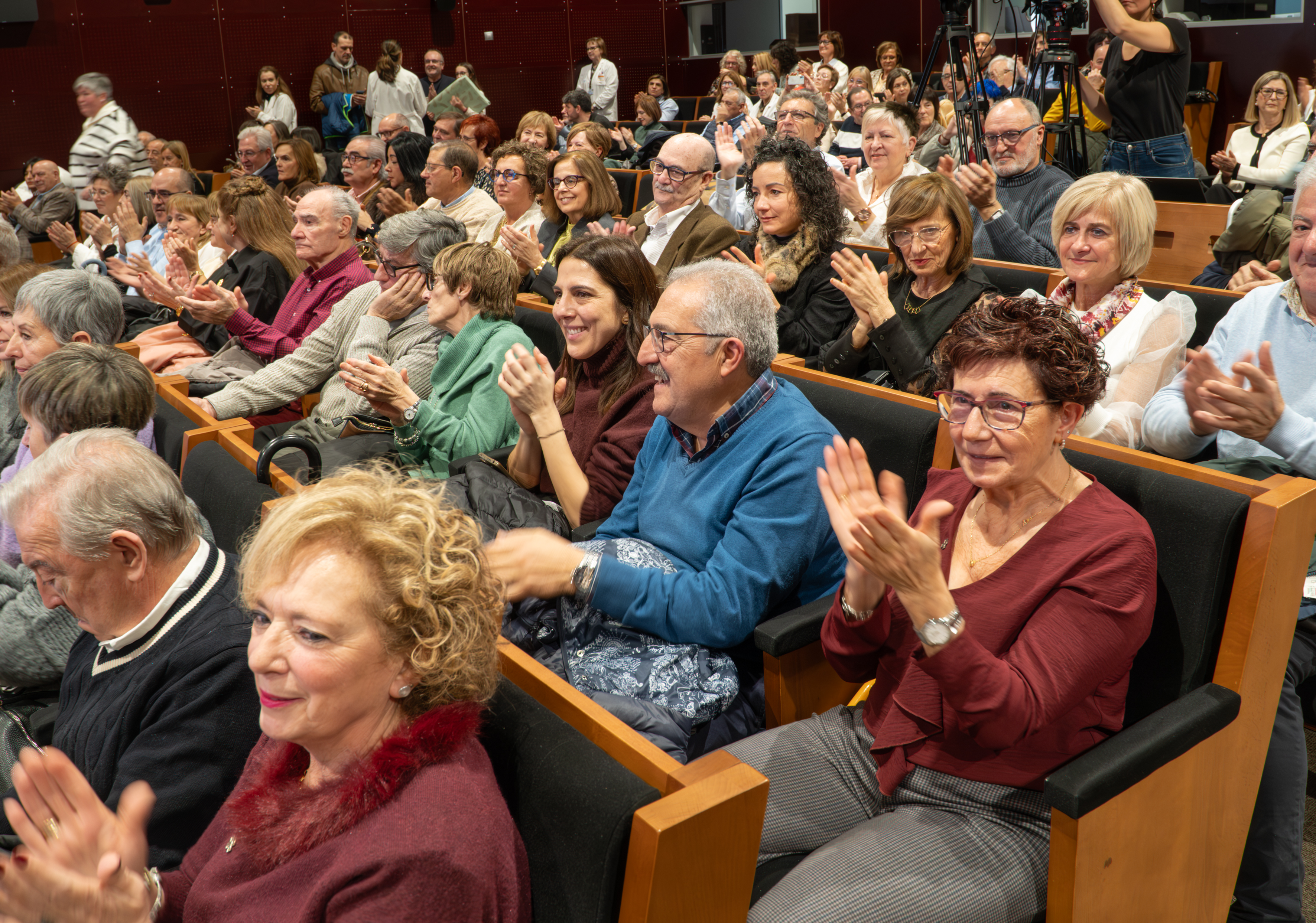 La consejera de Salud y Políticas Sociales, María Martín, acompañada por el gerente del SERIS, Luis Ángel González, ha participado hoy, 19 de diciembre, en Logroño, en el homenaje que el Servicio Riojano de Salud (SERIS) ha brindado a los 136 profesionales de Atención Primaria y Hospitalaria que se han jubilado a lo largo de 2025.