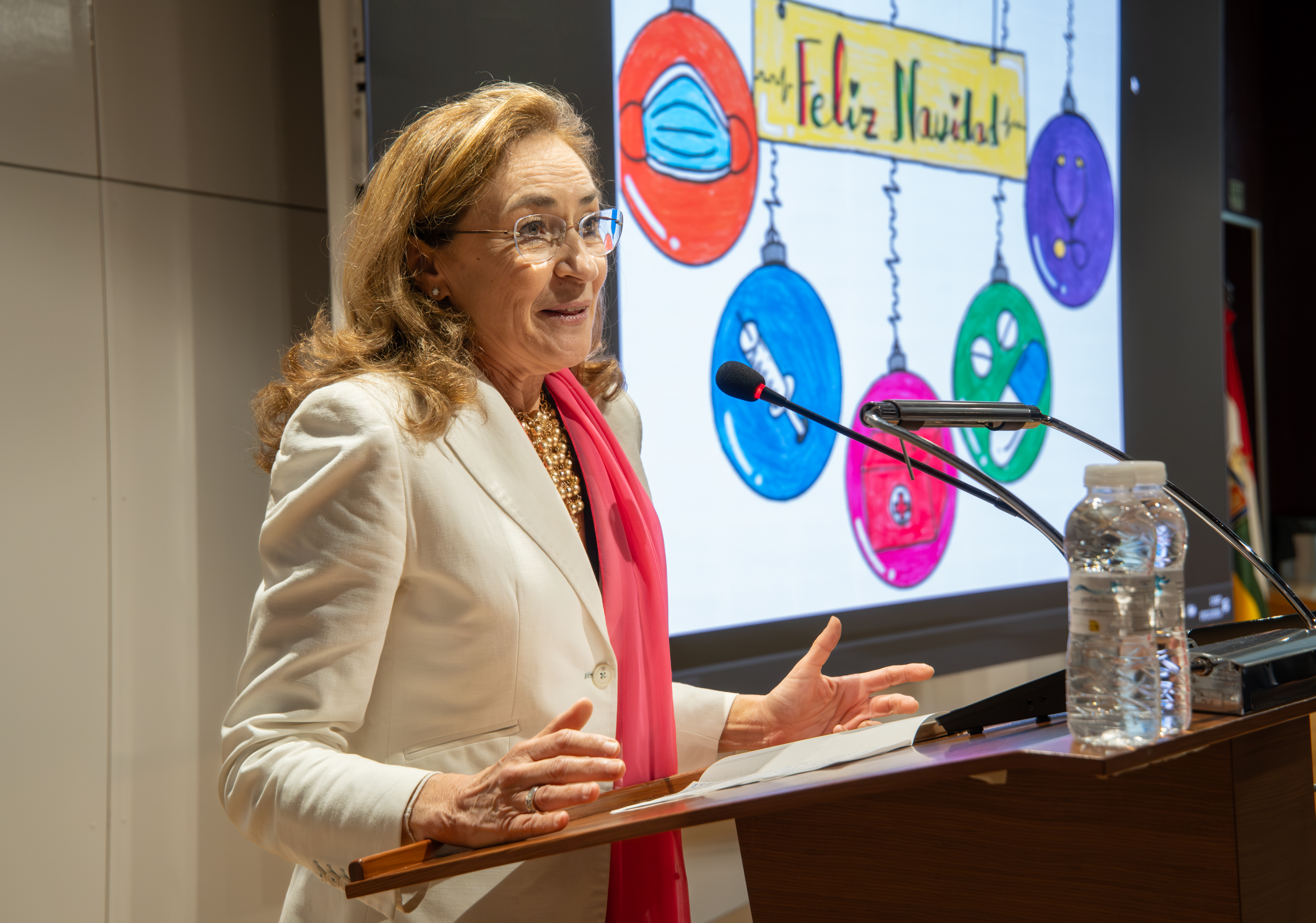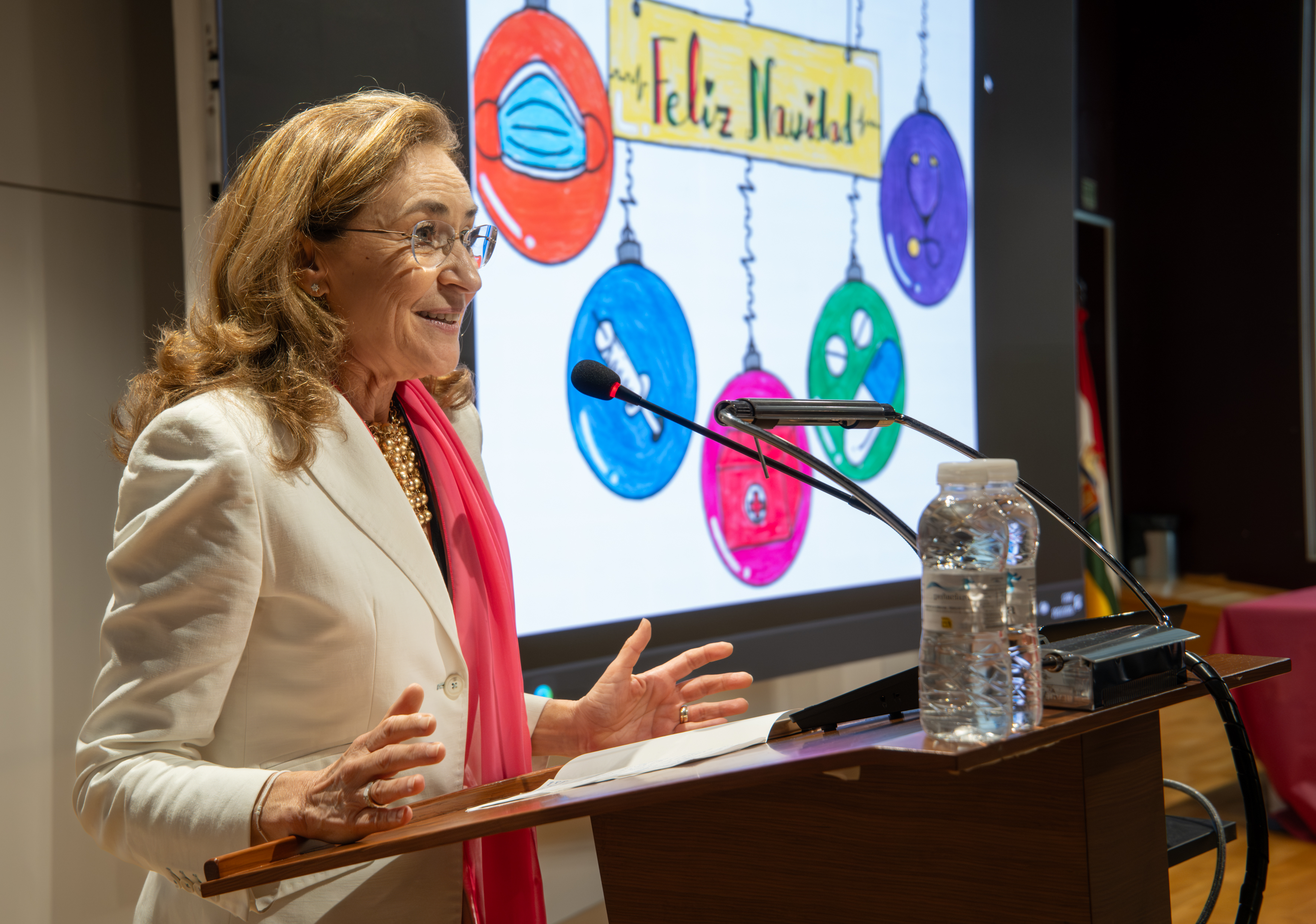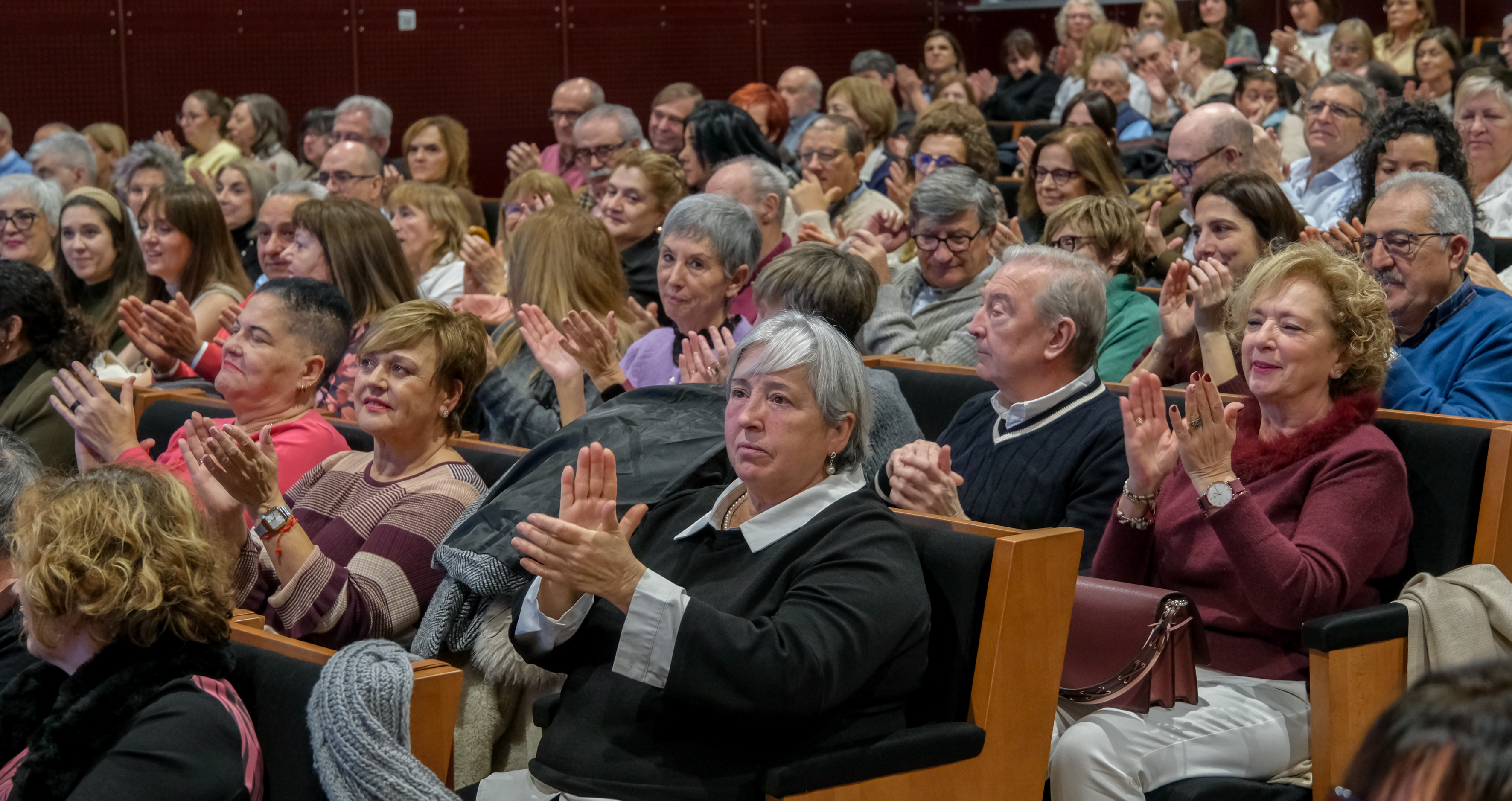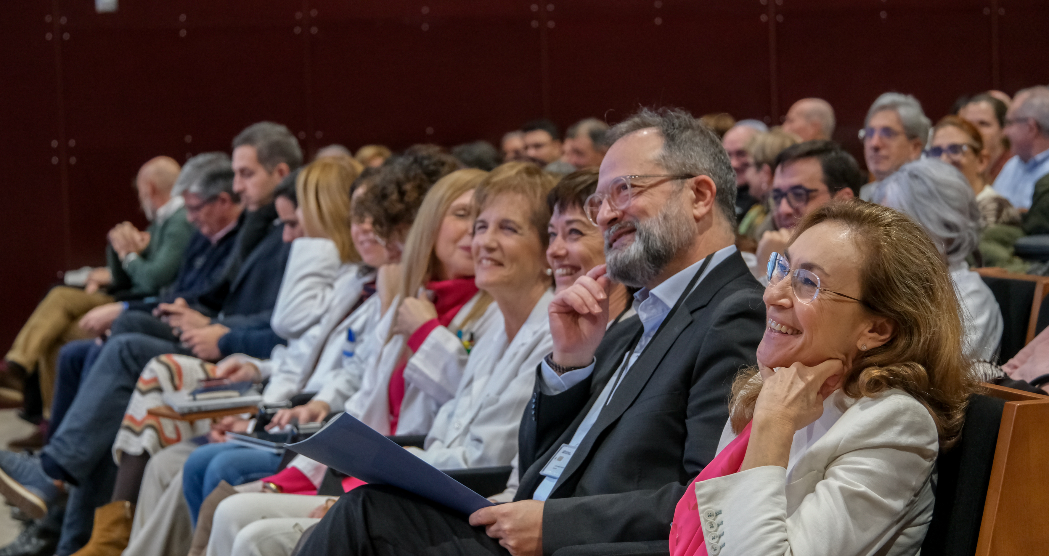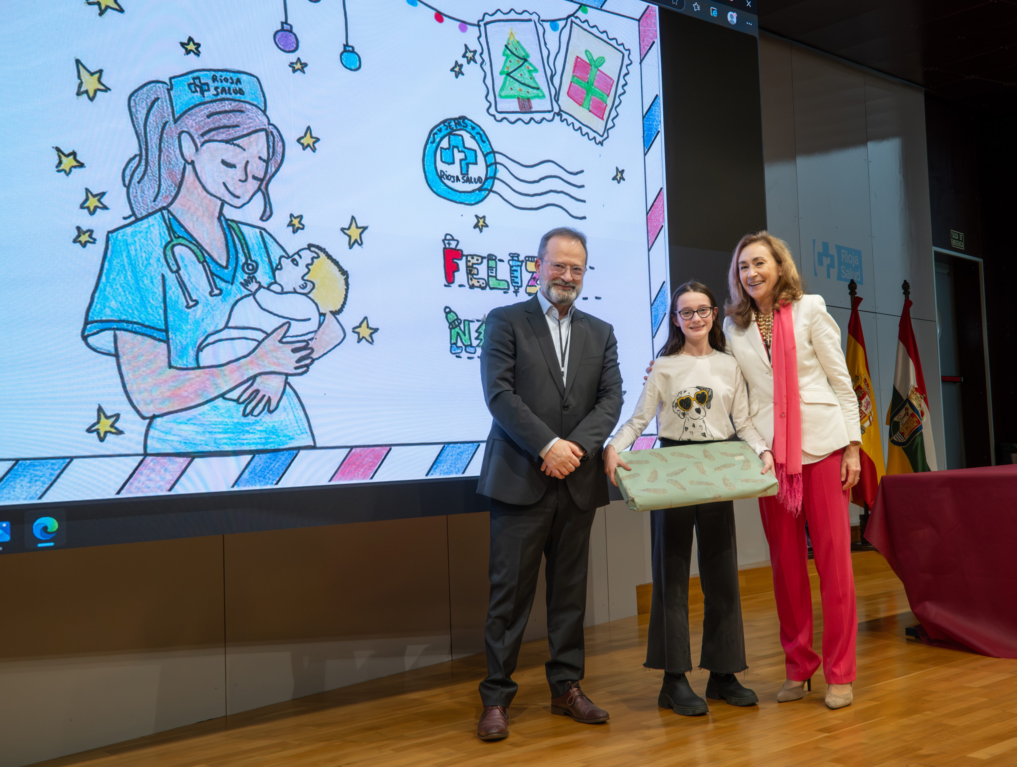 La consejera de Salud y Políticas Sociales, María Martín, acompañada por el gerente del SERIS, Luis Ángel González, ha participado hoy, 19 de diciembre, en Logroño, en el homenaje que el Servicio Riojano de Salud (SERIS) ha brindado a los 136 profesionales de Atención Primaria y Hospitalaria que se han jubilado a lo largo de 2025.
