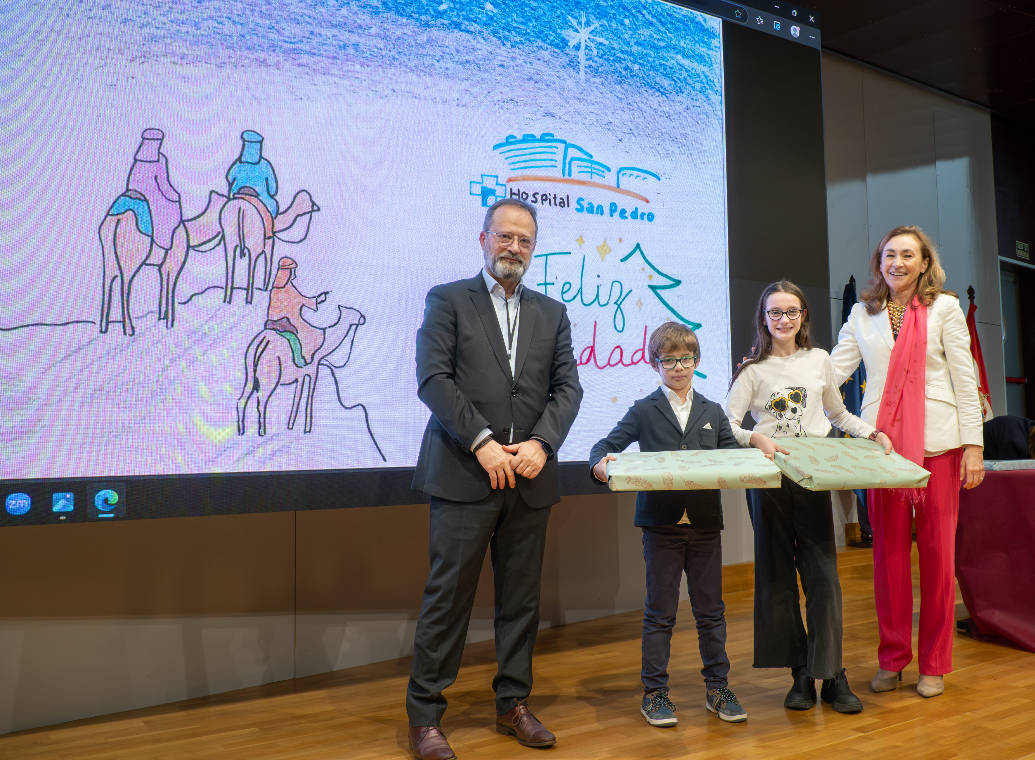 Tras la entrega de insignias a los profesionales jubilados, se ha aprovechado el acto para distinguir a los premiados en los diferentes concursos organizados por el SERIS: belenes, fotografías y de dibujos de navidad.