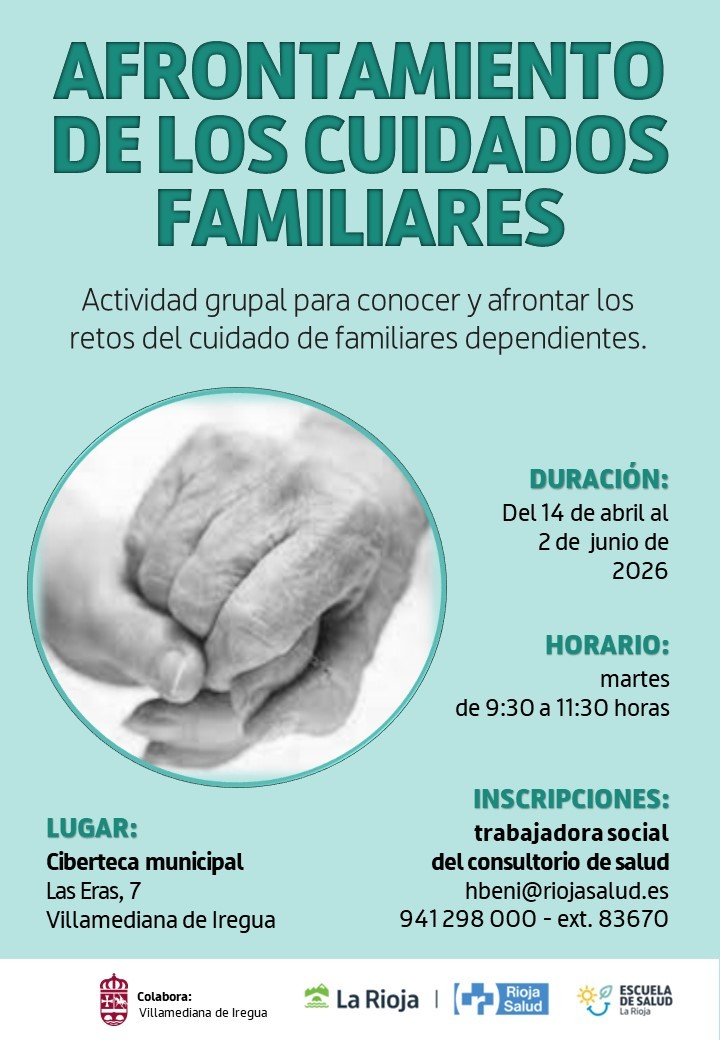 La Unidad de Trabajo Social del Consultorio de Salud de Villamediana de Iregua pondrá en marcha en abril la segunda edición del programa “Afrontamiento de los cuidados familiares de personas dependientes”, en colaboración con el Ayuntamiento de Villamediana de Iregua.
